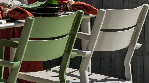 Brafab Delia Stackable Chair: Modern collection in 7 trendy colors. Completely aluminum, lightweight, stackable, excellent seating comfort and perfect to combine. Beautiful and timeless, the Brafab Delia garden chair fits perfectly on any terrace. Brafab Delia Stackable Chair: Modern collection in 7 trendy colors. Completely aluminum, lightweight, stackable, excellent seating comfort and perfect to combine. Beautiful and timeless, the Brafab Delia garden chair fits perfectly on any terrace. The Brafab Delia stackable aluminum garden chair is lightweight and easy to stack! This allows you to easily store or move them on the terrace. The neatly finished garden chair is made of powder-coated aluminum and available in 7 trendy colors, so combine to your heart's content!