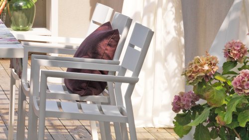 Brafab Delia Stackable Chair: Modern collection in 7 trendy colors. Made entirely of aluminum, lightweight, stackable, great seating comfort, and perfect to combine. Beautiful and timeless, the Brafab Delia garden chair fits perfectly on any terrace. Brafab Delia Stackable Chair: Modern collection in 7 trendy colors. Made entirely of aluminum, lightweight, stackable, great seating comfort, and perfect to combine. Beautiful and timeless, the Brafab Delia garden chair fits perfectly on any terrace. The Brafab Delia stackable aluminum garden chair is lightweight and easy to stack! This makes it easy to store or move them on the terrace. The neatly finished garden chair is made of powder-coated aluminum and available in 7 trendy colors, so feel free to combine!