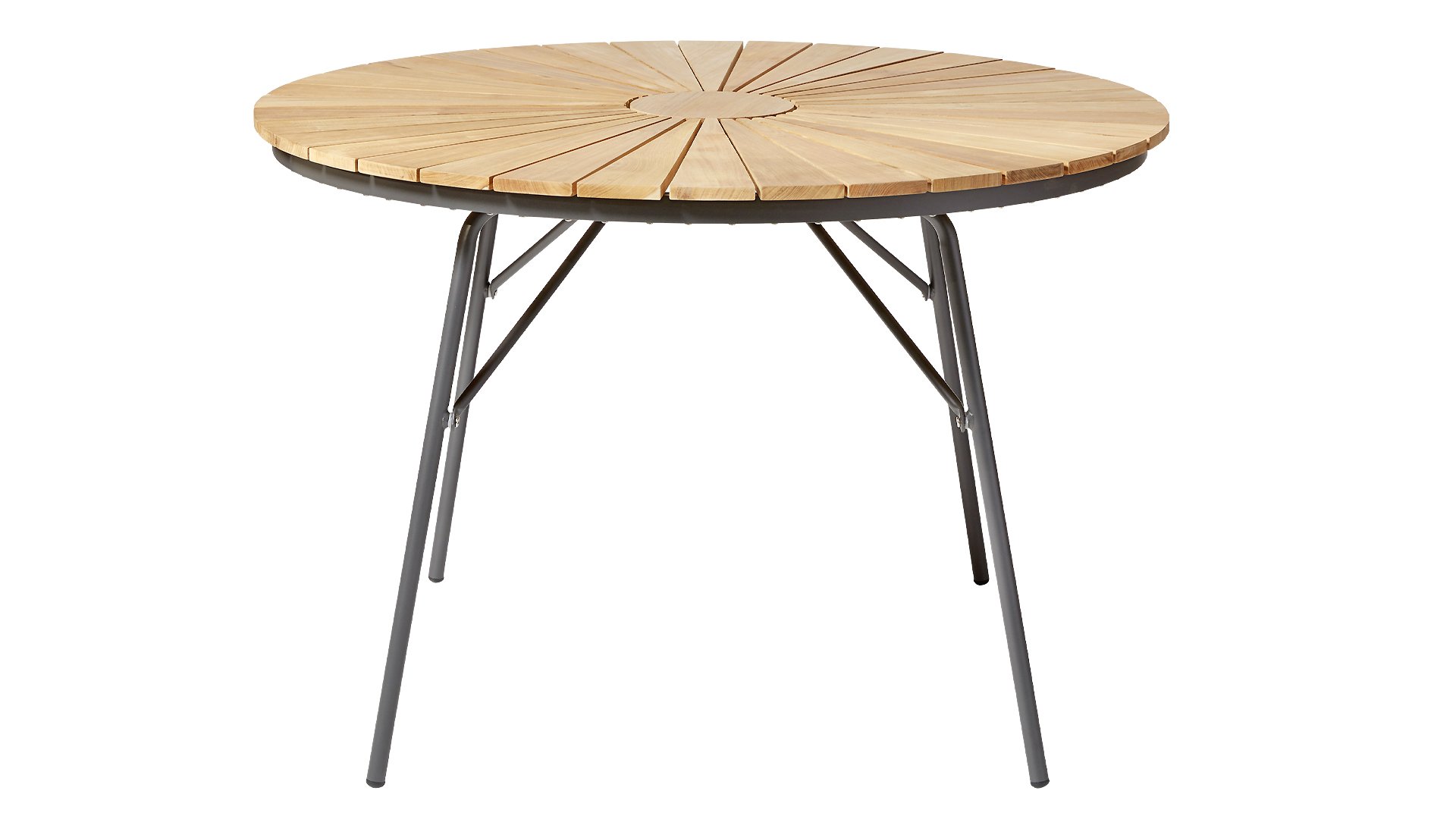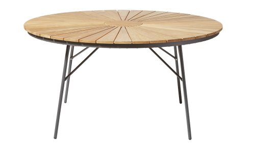 The beautiful CINAS Ellen tables have a unique teak wood top in the shape of sun rays, if that doesn't make you feel warm!