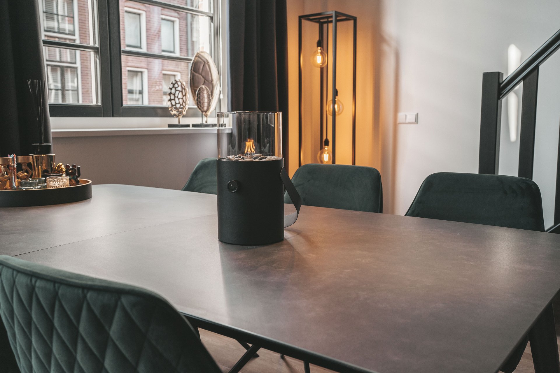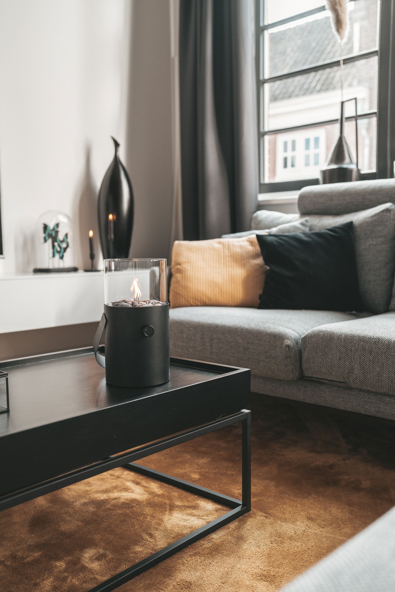 Cosiscoop gas lantern, ideal for home but also on the go and on vacation. Multifunctional gas lantern that you can now always take with you. This Cosi-to-go is the ideal mood maker and also very easy to use. The Cosiscoop Original is available in the colors ivory, black, olive green, stainless steel, taupe and terra. The last two colors are new additions to the Original series.