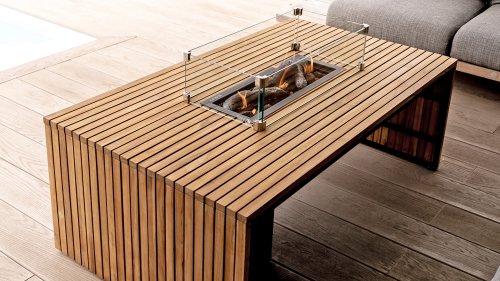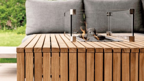 The Cosibridge is a real eye-catcher that fits perfectly with the latest outdoor trends. The fire table is made of teak slats that beautifully accentuate the length of the table (140 cm). Thanks to its size, there is more than enough space to invite friends and family for a drink. The combination of teak and aluminum makes the fire table maintenance-friendly and a sustainable choice.