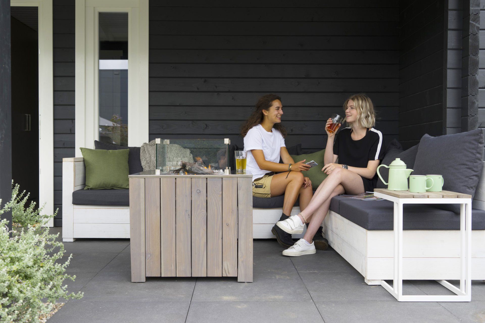 These robust Cosicube models are made of Douglas wood combined with a stainless steel outdoor-quality top plate, making them extremely suitable for outdoor use. With a Cosicube in your garden, you'll never want to stay indoors again! A gas bottle with a capacity of up to 5 kg can be placed behind the invisible hatch in the Cosicube. The Cosicube is handcrafted, making each one unique. The Cosicube is often used as a lounge table with a lounge set. The Cosicube is available in grey wash and black.