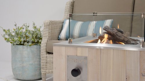 Each Cosi Cube includes: ceramic fire logs, lava stones, and a gas pressure regulator set. A square glass set consisting of four glass panels is available separately. This glass set protects the fire from strong winds and provides extra safety for small children's hands.