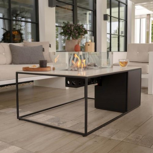 1 x CosiDesign Line fire table stainless steel black/ceramic white marble