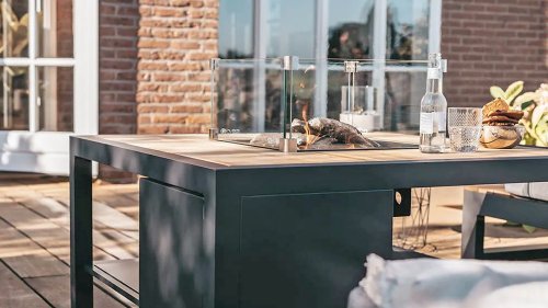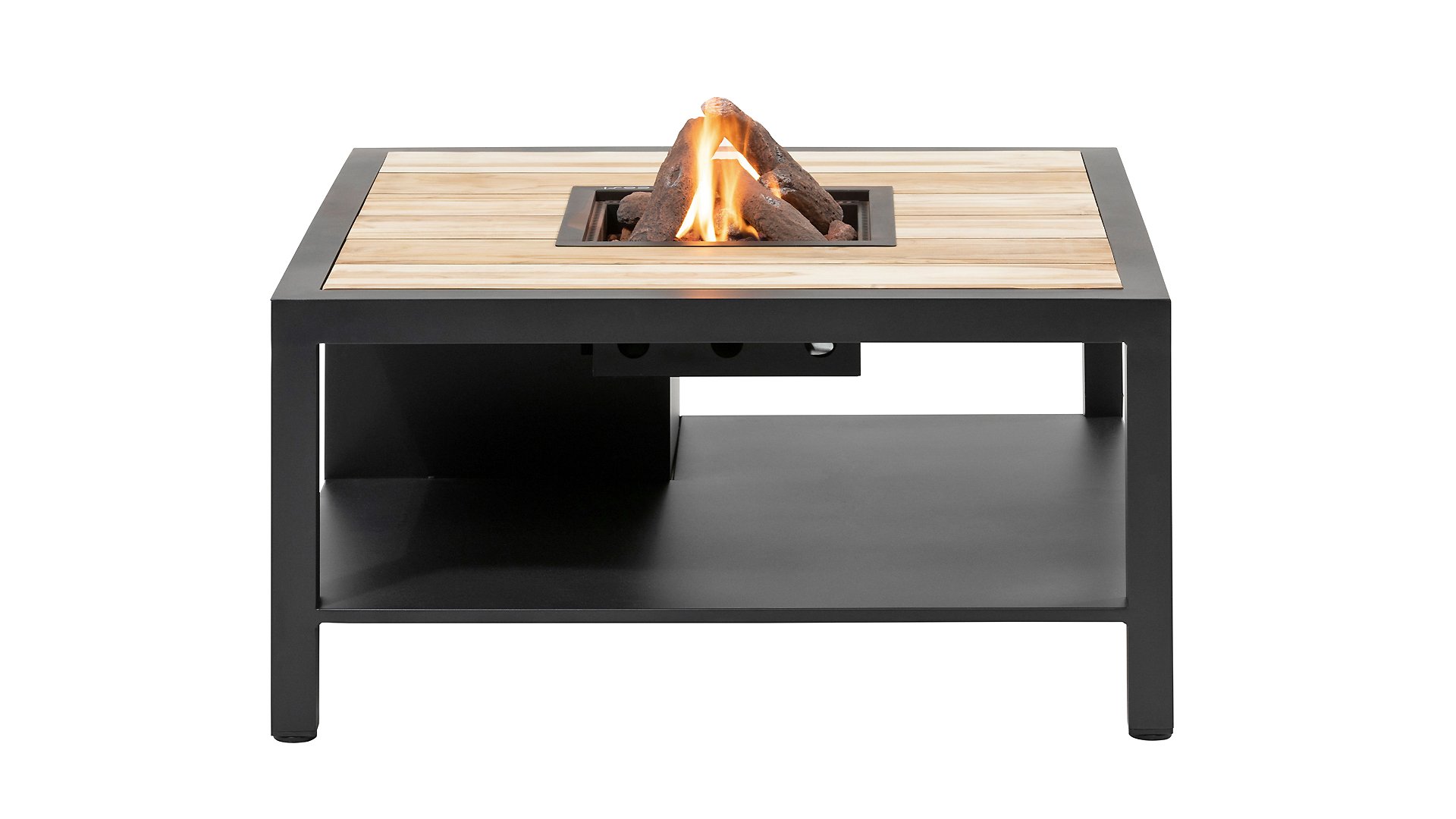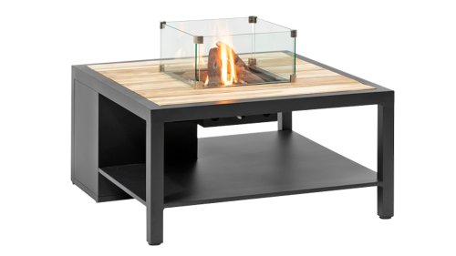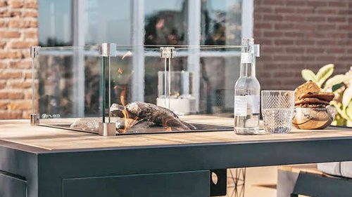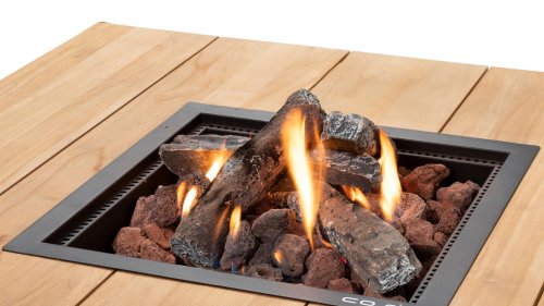 The Cosiflow series excels in its simplicity. The Cosiflow is entirely made of aluminum, which means no maintenance for this table. Additionally, due to its sleek design, this table fits with any garden set. Whether you choose teak, upholstered, or plastic, the Cosiflow always matches. Beneath the Cosiflow table is an extra panel for placing loose items. The Cosiflow fire table comes ready to use. This means it is supplied with a pressure regulator with gas hose, a battery for ignition, ceramic logs, and lava stones.
