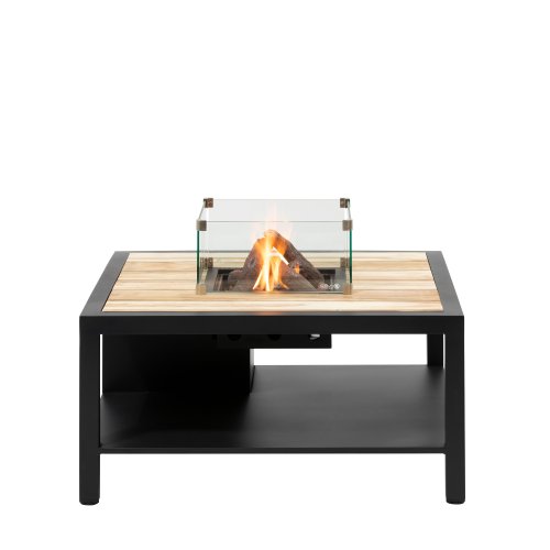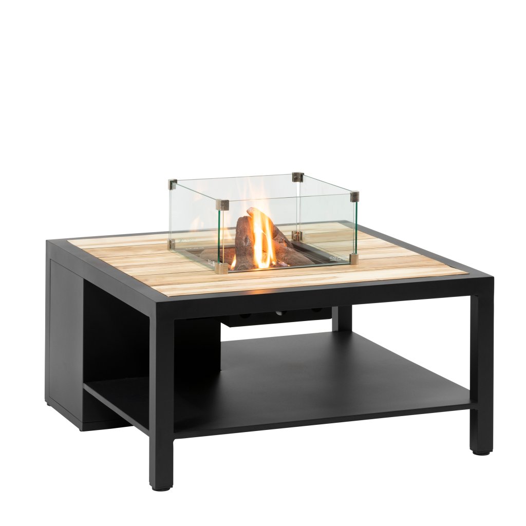 CosiFlow Square Fire Table Alu-Teak + Glass Set