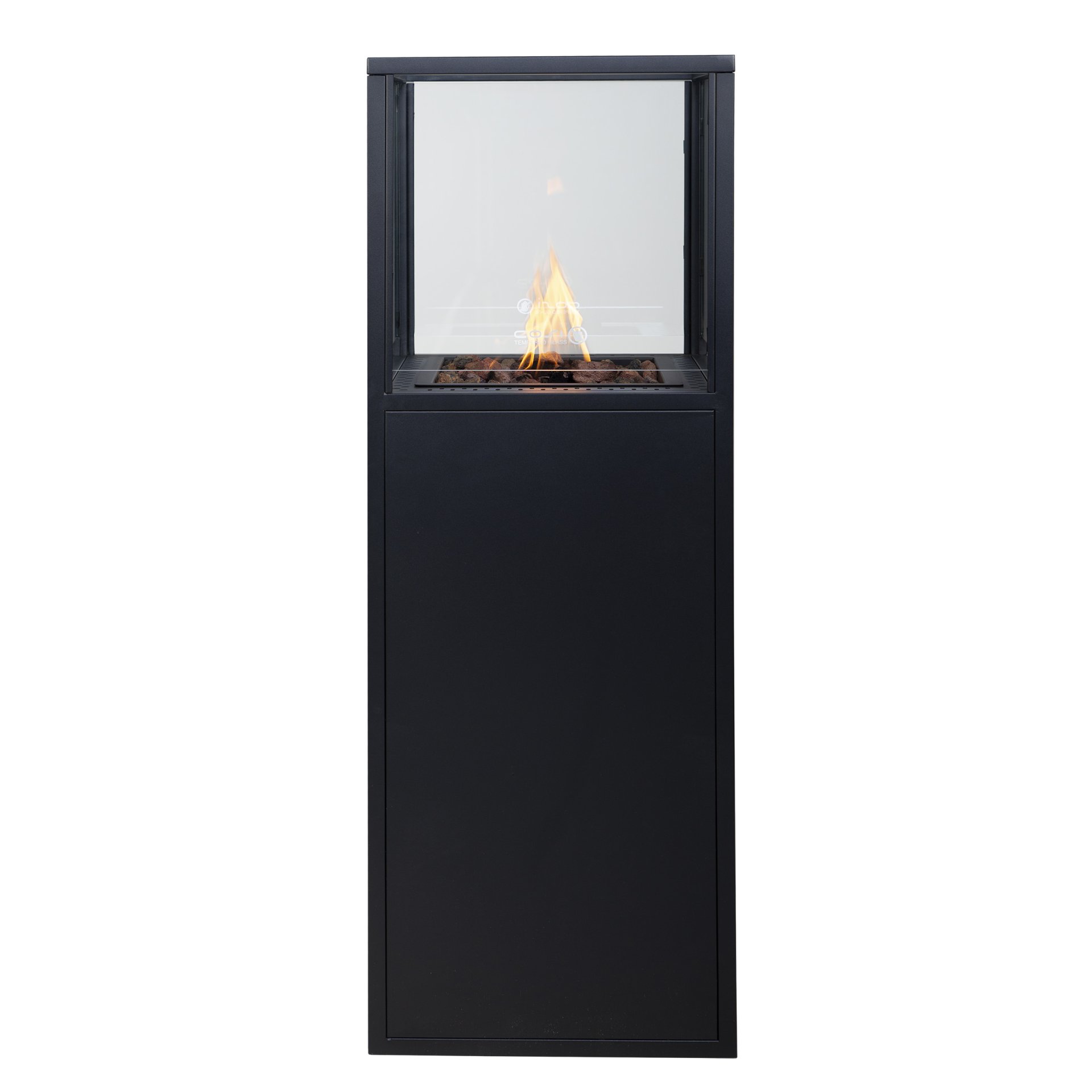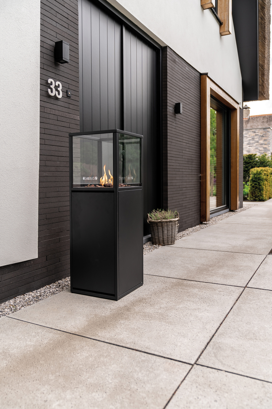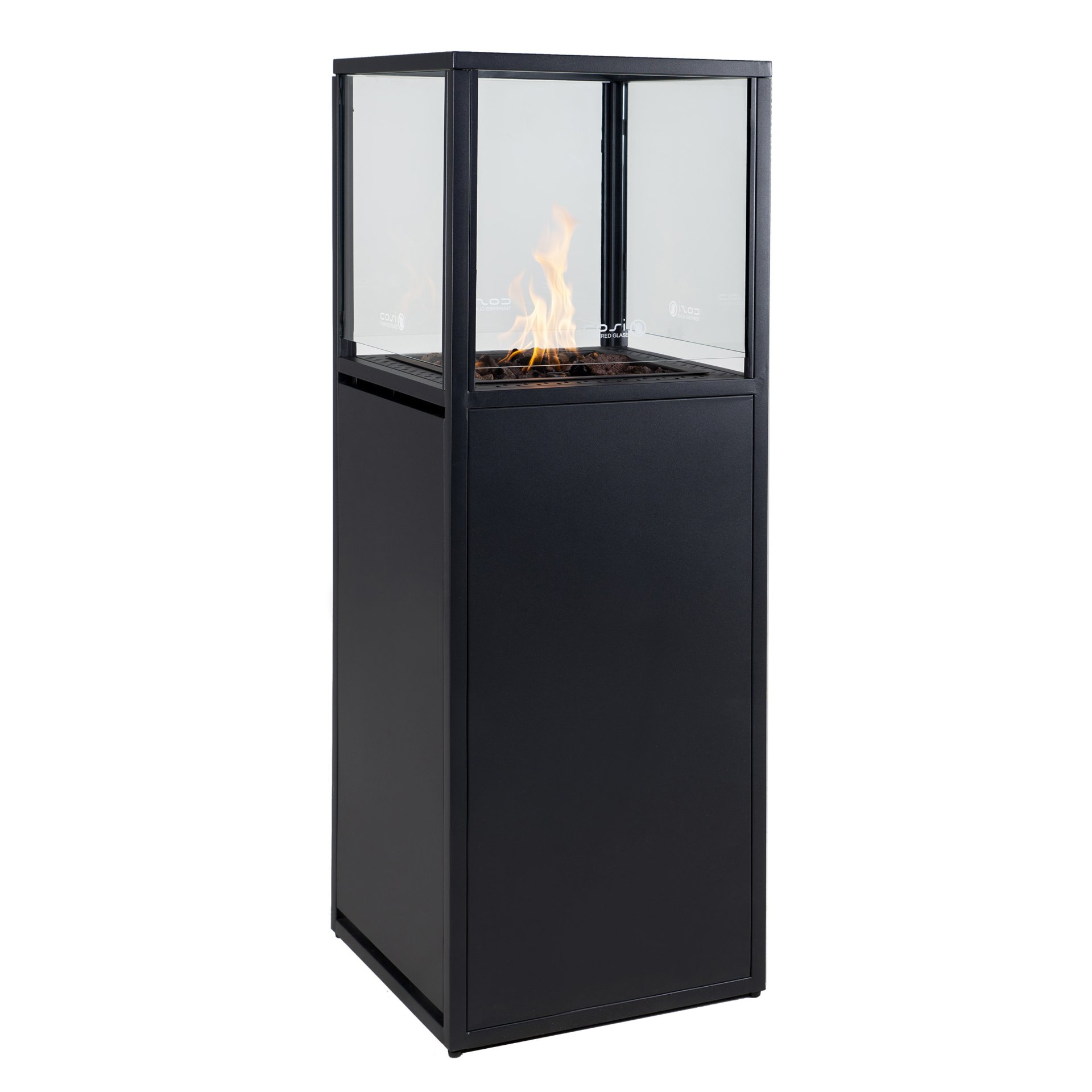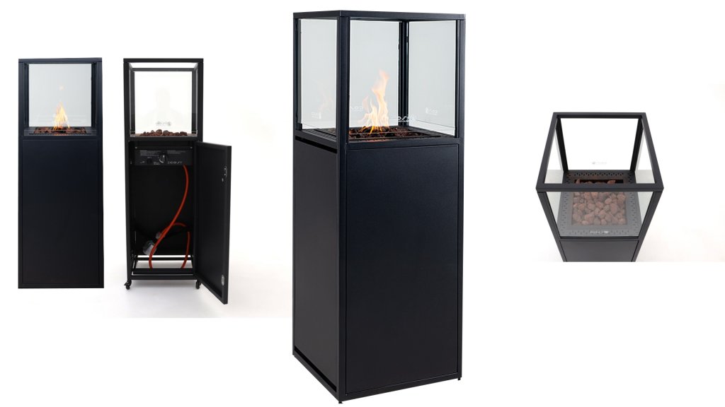 New in the Cosiscoop collection, the Cosiscoop Pillar. These fantastic pillar-shaped gas stoves steal the show in the garden, on the terrace, and under the veranda. The Pillar is available in two variants: stylish black and rugged teak wood. The Cosiscoop Pillars are stand-alone objects that steal the show in any location. Unlike other Cosiscoops, these large lanterns operate on a gas bottle, both 5 kg and 10 kg, instead of a gas cartridge. This ensures that the Pillar burns for many times longer than the smaller Scoops. If you place a 5 kg gas bottle in the Pillar, you can enjoy this pillar-shaped Scoop for about 70 hours.