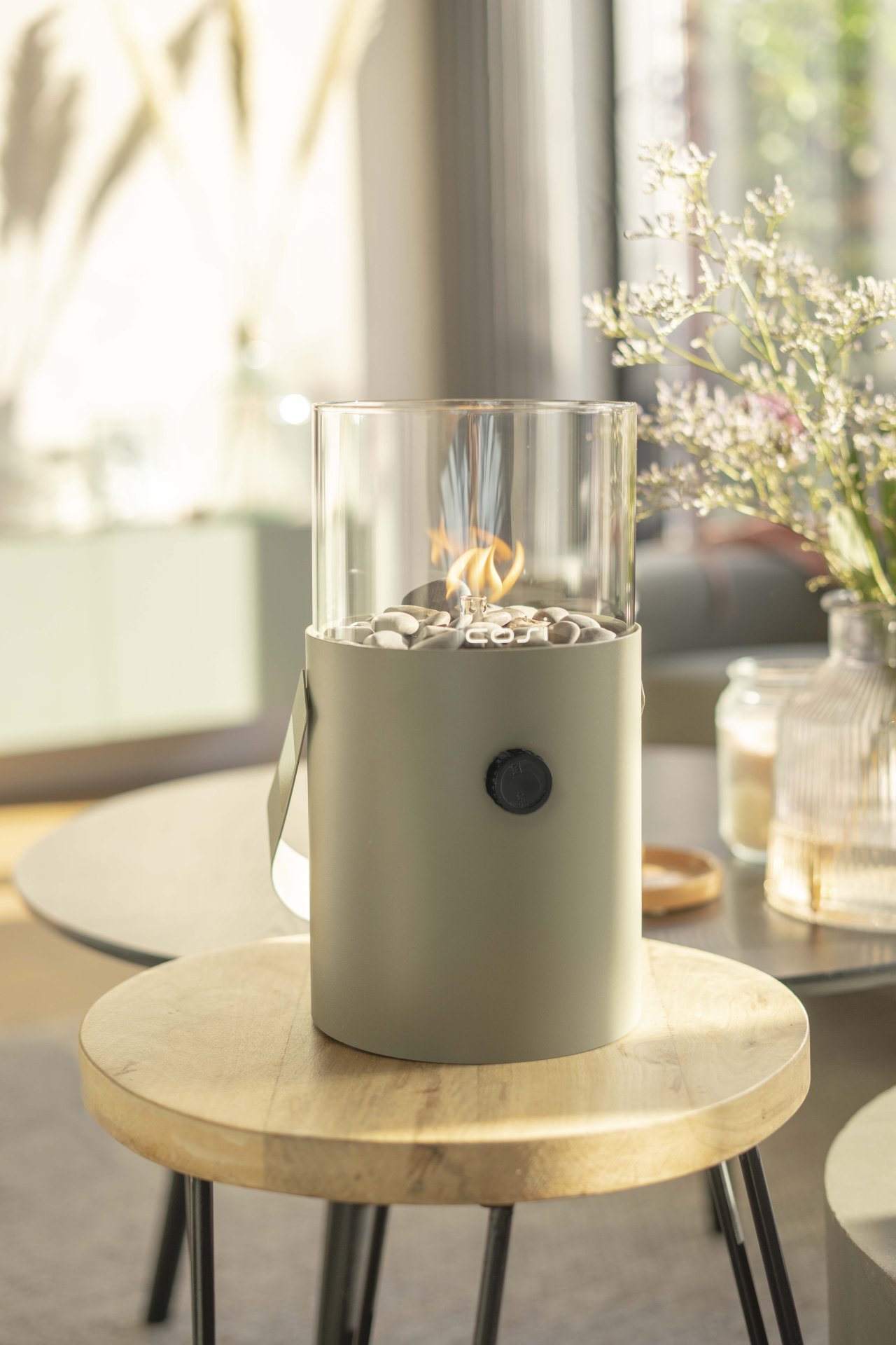 Cosiscoop gas lantern, ideal for home but also on the go and on vacation. Multifunctional gas lantern that you can now always take with you. This Cosi-to-go is the ideal mood setter and also very easy to use. The Cosiscoop Original is available in the colors ivory, black, olive green, stainless steel, taupe, and terra. The last two colors are new additions to the Original series.