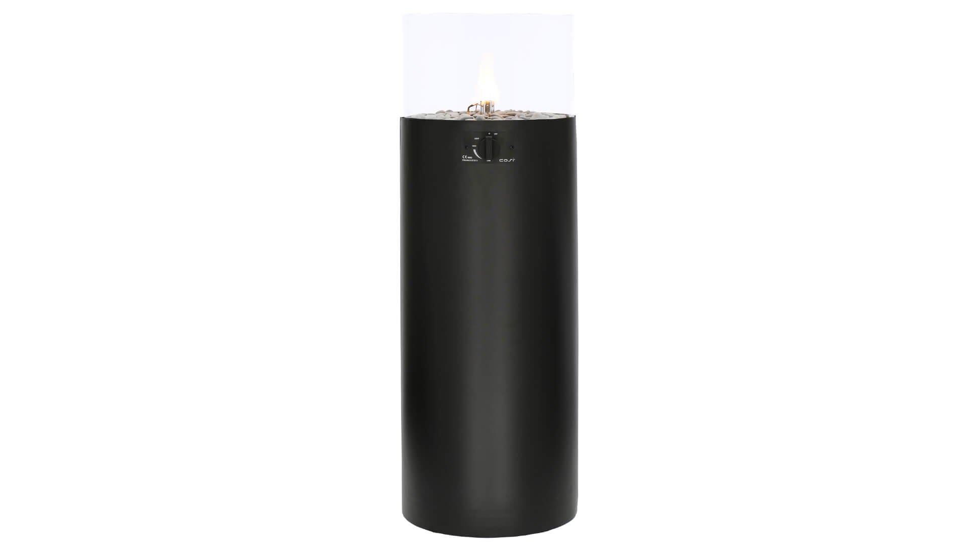 New in the Cosiscoop collection, the Cosiscoop Pillar. These fantastic pillar-shaped gas fires steal the show in the garden, on the terrace, and under the veranda. The Pillar is available in two variants: stylish black and rugged teak wood. The Cosiscoop Pillars are stand-alone objects that steal the show at any location. Unlike other Cosiscoops, these large lanterns operate on a gas bottle, both 5 kg and 10 kg, instead of a gas cartridge. This ensures that the Pillar burns many times longer than the smaller Scoops. If you place a 5 kg gas bottle in the Pillar, you can enjoy these pillar-shaped Scoops for about 70 hours.