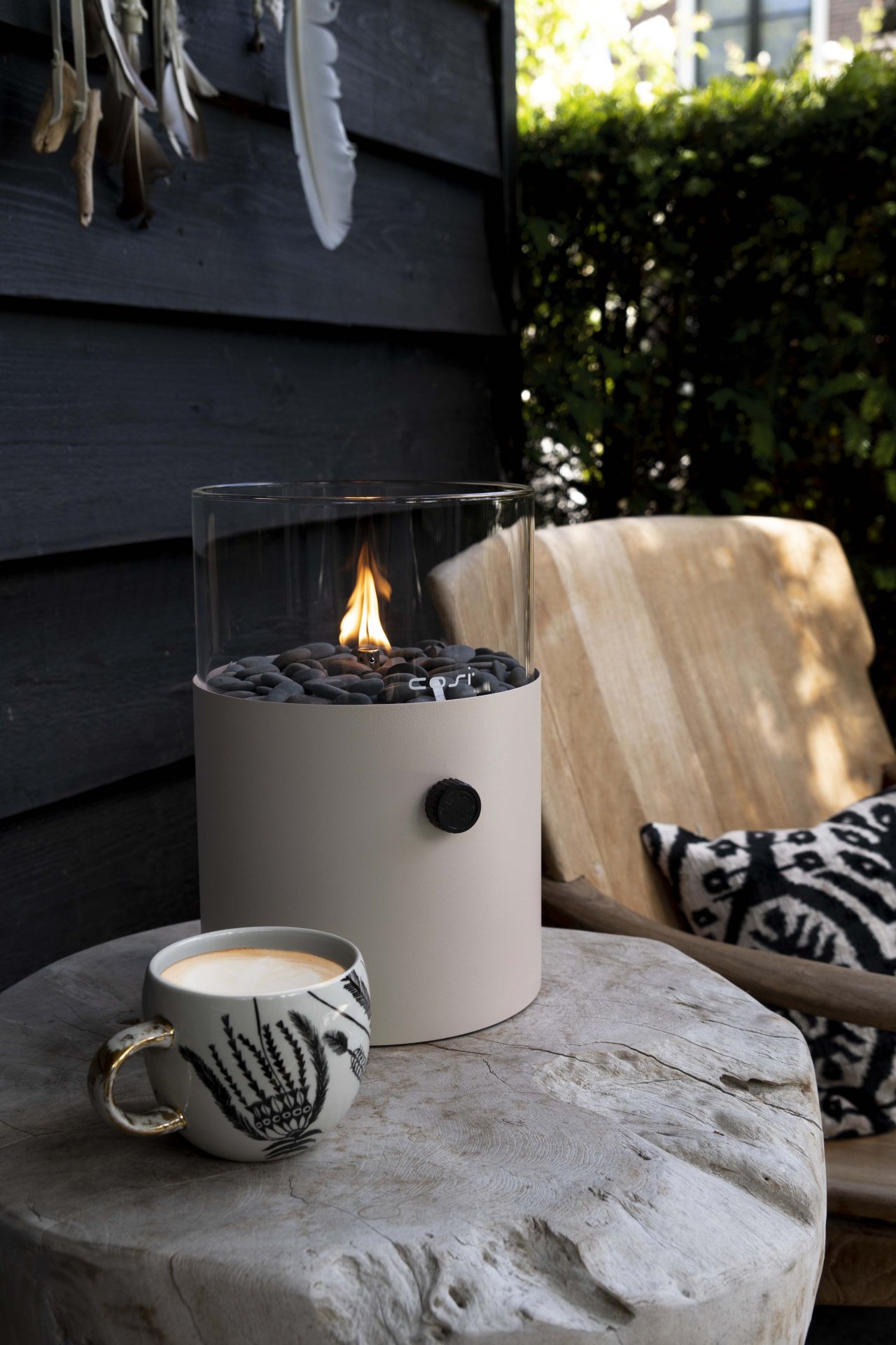 The Cosiscoop XL is the big brother of the Cosiscoop Original. The XL has a diameter of 20 cm and is a real eye-catcher on your salon or garden table. Will you choose industrial black or stylish taupe? The color taupe is between gray and beige, which makes it a perfect match for your garden.