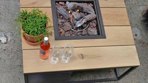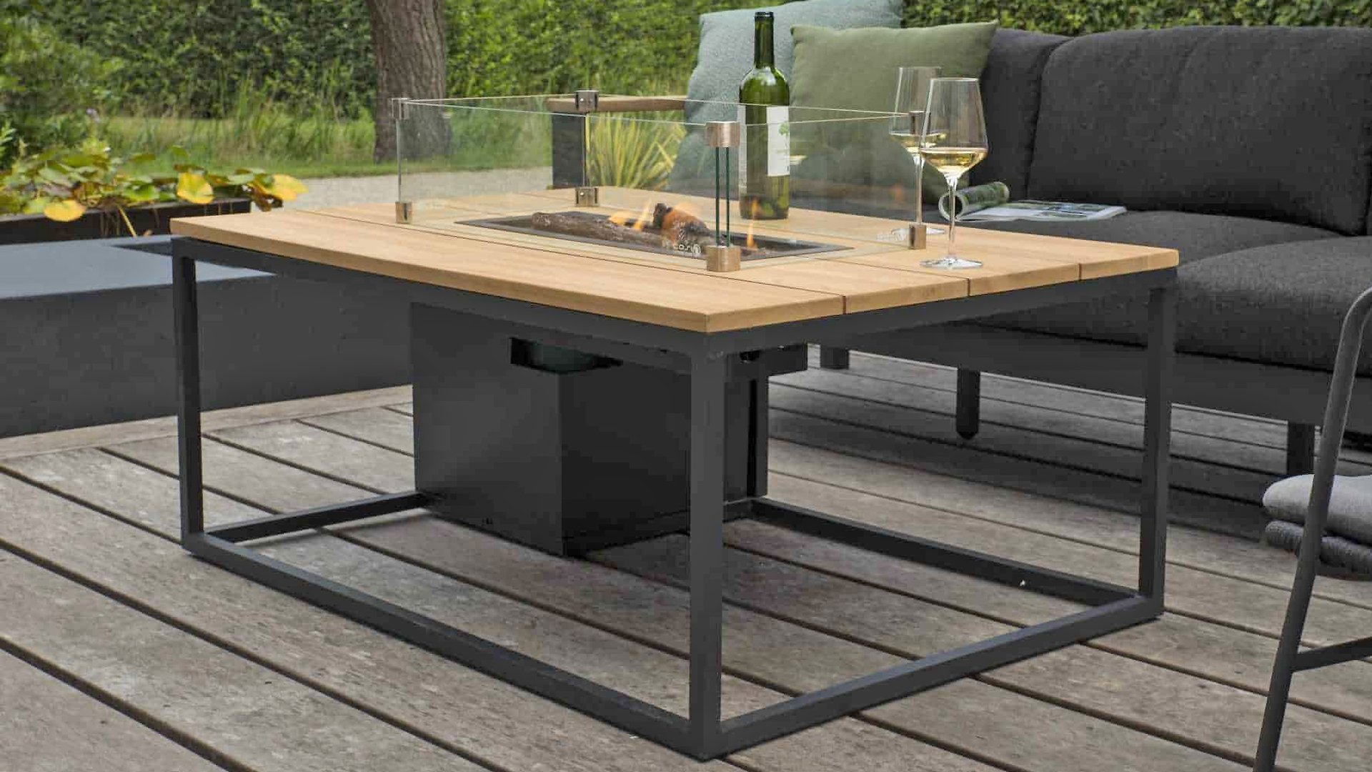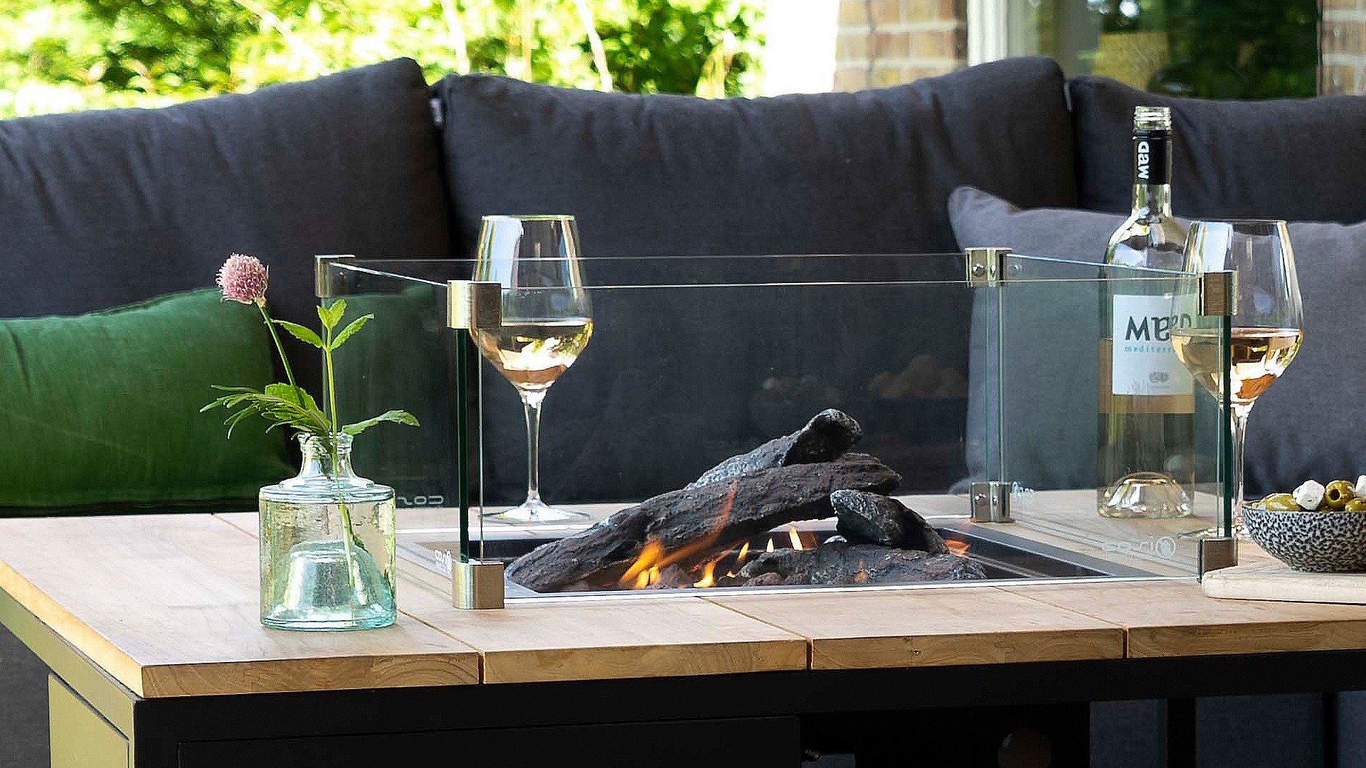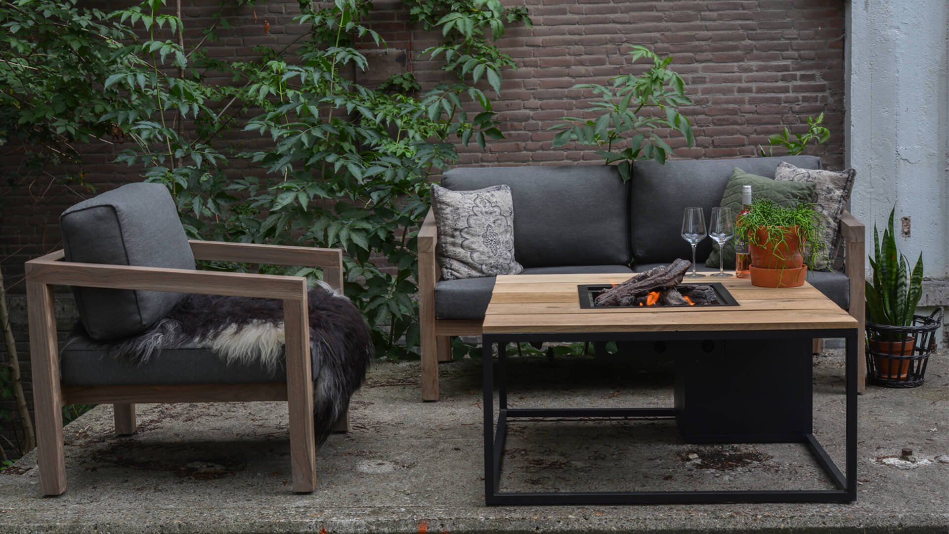 The Cosiloft 120 lounge table can easily be combined with a wide range of lounge sets. The Cosiloft 120 lounge table features a straight burner that provides enough space to invite all your friends and family for a drink. The Cosiloft is 80 cm wide and 120 cm long. This fire table has a beautiful, open-worked aluminum frame, just like the Cosiloft 100, which can be combined with one of the three table tops: teak, black, and grey. The frame is available in two colors: white for a modern look or black for an industrial style. Despite its beautiful lounge table height, the Cosiloft 120 can even accommodate a 5 kg gas bottle. This is well integrated into the pure design of the Cosiloft table. An cover plate for the burner is included with each Cosiloft. If you don't have the fireplace on, you can still use the entire table surface in this way.