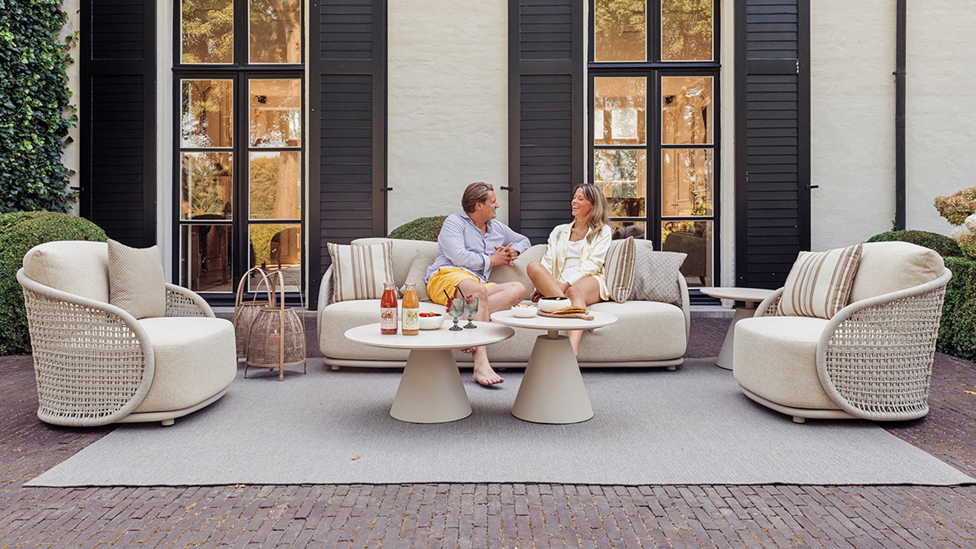 Available in Stylish Colours: The combination of the warm, linen-coloured frame and the elegant, light grey, hand-woven rope creates a modern yet cosy look that fits into any garden.