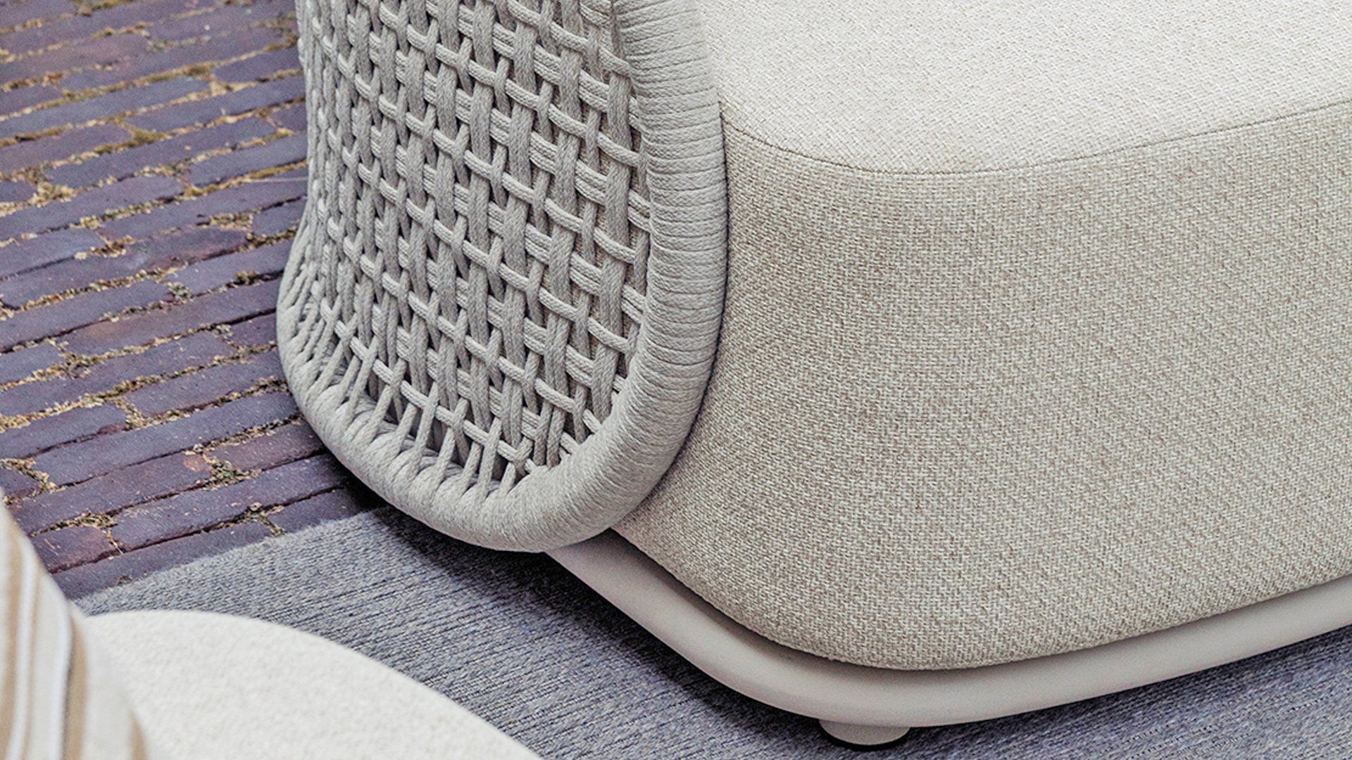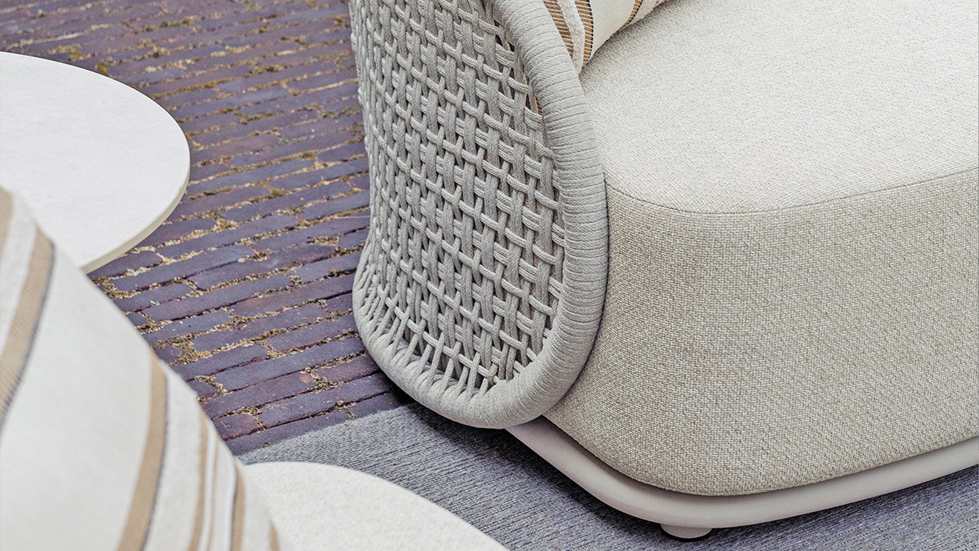 This beautiful material is perfect for outdoor use, because Gescova Rope isn't just any shoelace. Gescova uses very high-quality rope made from 100% SDP (Solution Dyed Polypropylene). This material is extremely strong and has very little stretch. Polypropylene is oil-based, so dirt and contaminants are virtually insoluble, just like our cushions. Taste offers exclusive designs using hand-woven rope patterns and techniques.