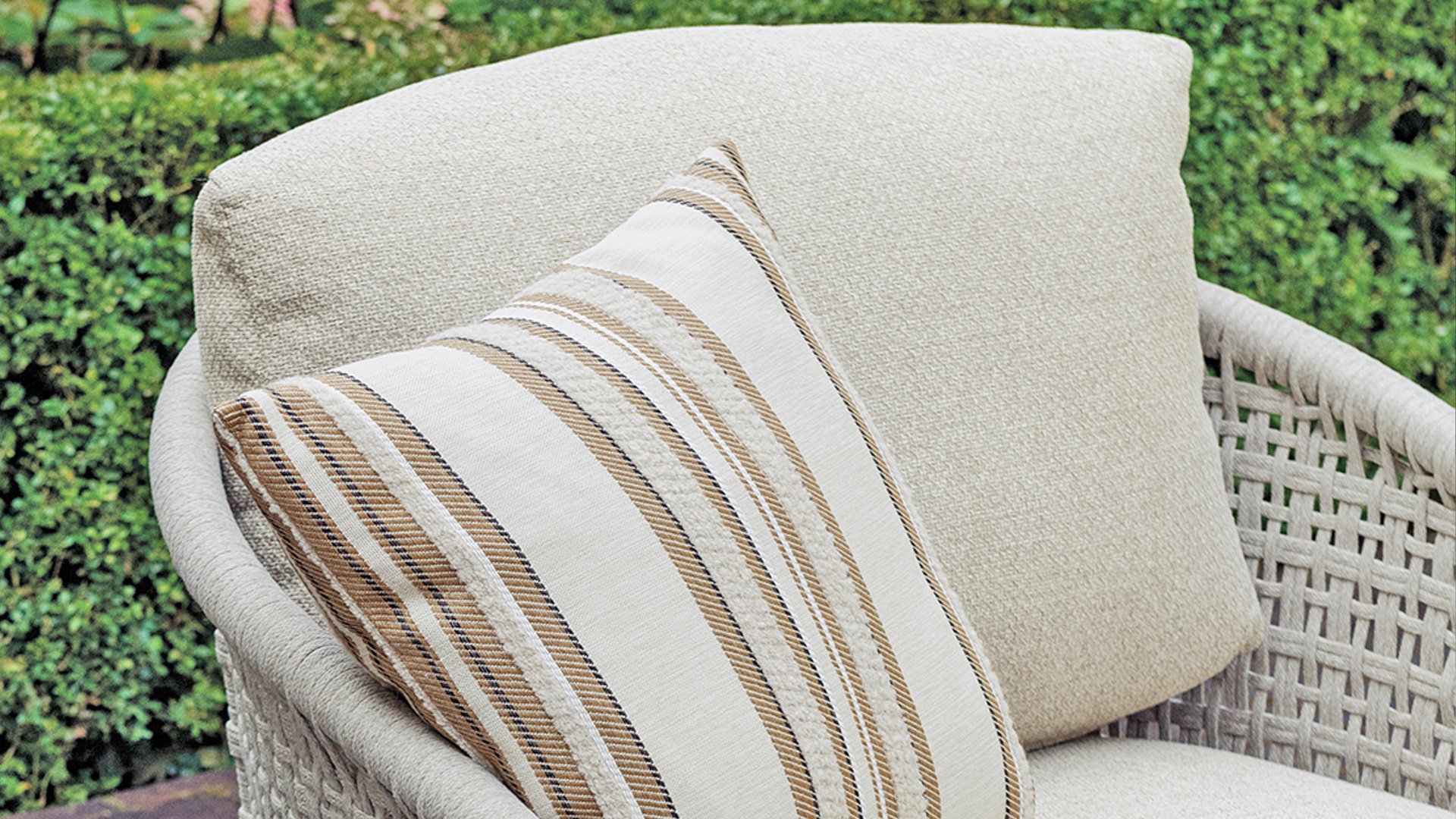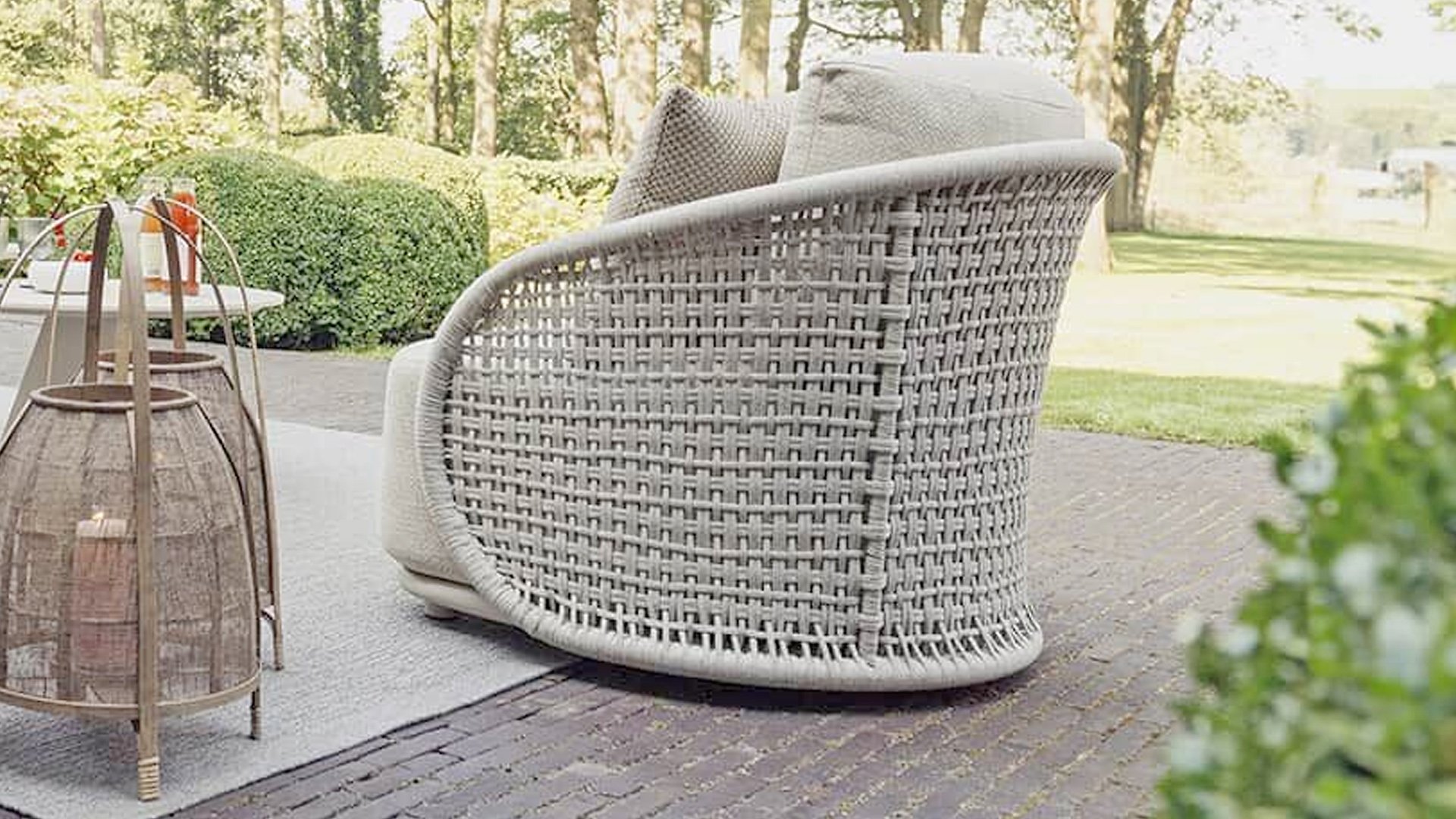 Available in Stylish Colours: The combination of the warm, linen-coloured frame and the elegant, light grey, hand-woven rope creates a modern yet cosy look that fits into any garden.