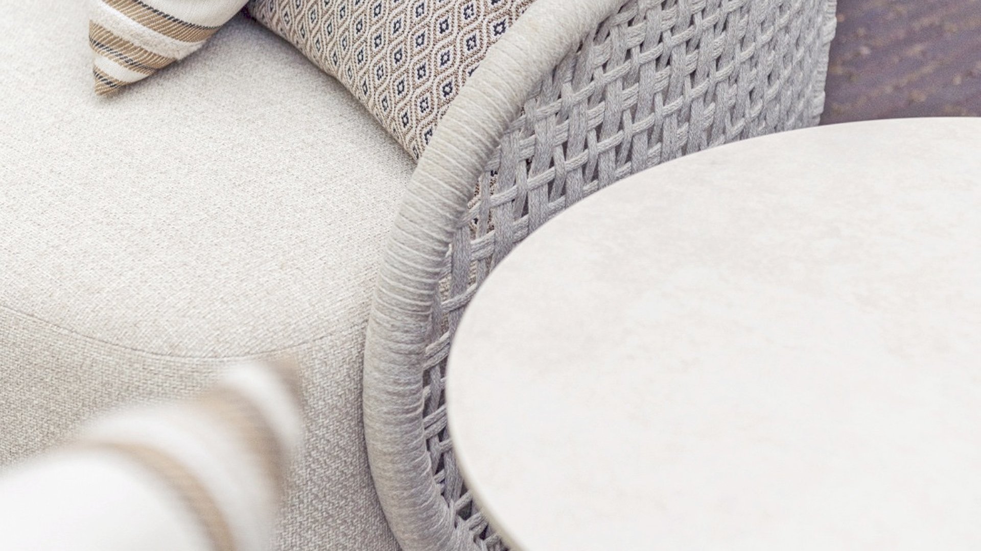 This beautiful material is perfect for outdoor use, because Gescova Rope isn't just any shoelace. Gescova uses very high-quality rope made from 100% SDP (Solution Dyed Polypropylene). This material is extremely strong and has very little stretch. Polypropylene is oil-based, so dirt and contaminants are virtually insoluble, just like our cushions. Taste offers exclusive designs using hand-woven rope patterns and techniques.