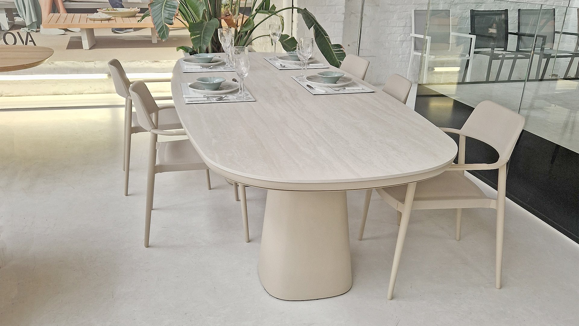 1 x Gescova Newcastle table Alu Sand - Ceramic Travertino 90cm