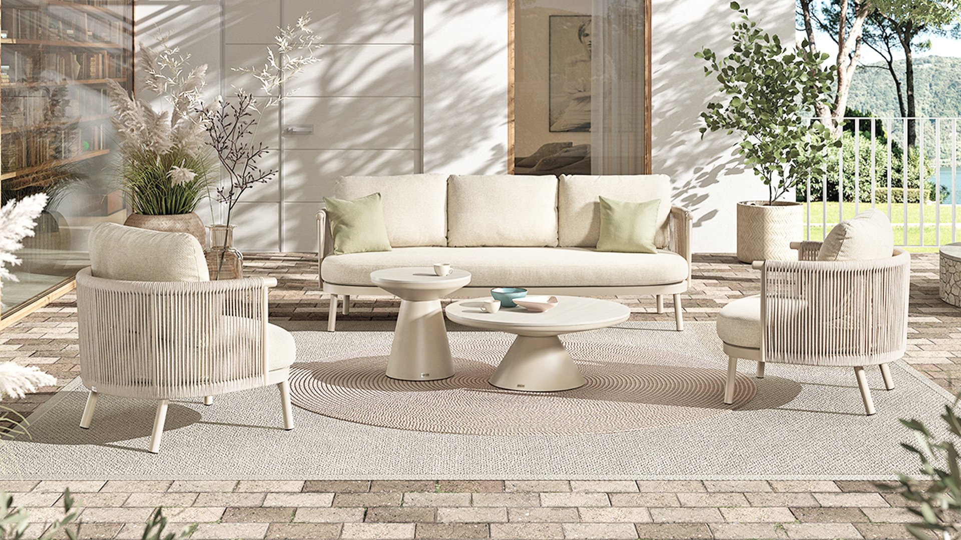 Available in Stylish Colours: The combination of the warm, linen-coloured frame and the elegant, light grey, hand-woven rope creates a modern yet cosy look that fits into any garden.