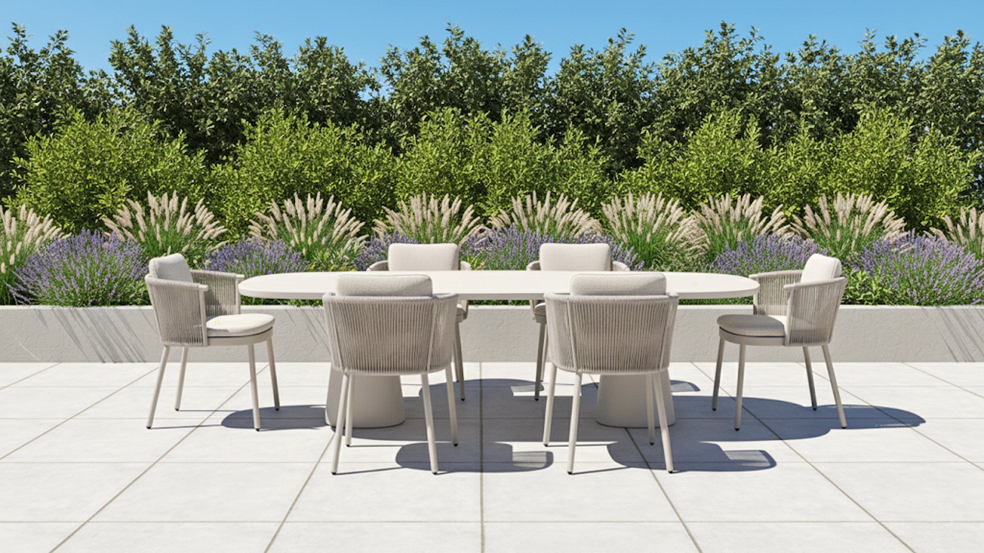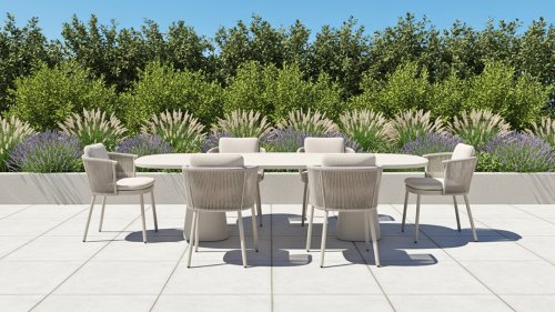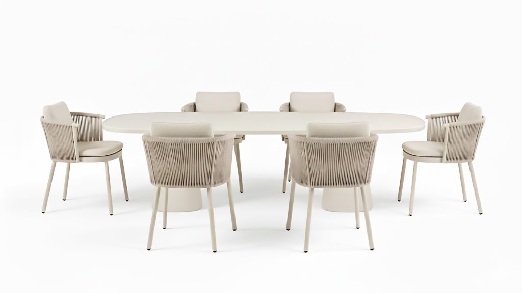 • High-quality materials: Weatherproof cushions, a sturdy aluminum frame, and rope details that stay beautiful for years.