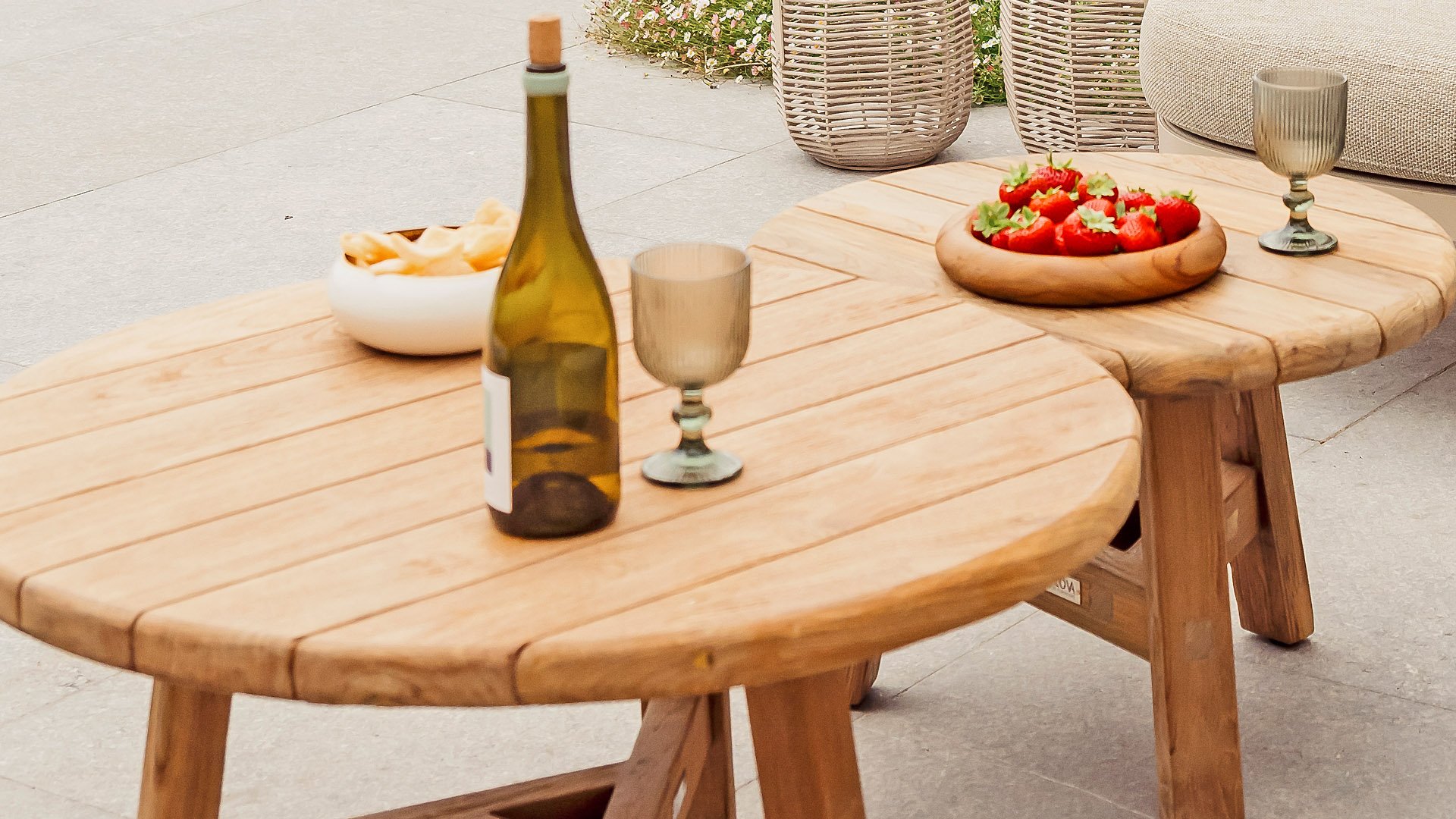 Available in Stylish Colours: The combination of the warm, linen-coloured frame and the elegant, light grey, hand-woven rope creates a modern yet cosy look that fits into any garden. Available with teak or aluminium elements.