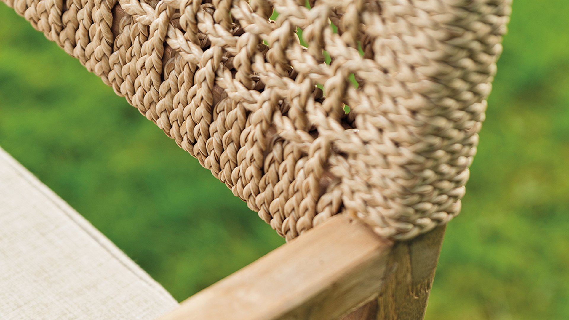 This beautiful material is perfect for outdoor use, because Taste Rope isn't just any shoelace. Taste uses very high-quality rope made from 100% SDP (Solution Dyed Polypropylene). This material is extremely strong and has very little stretch. Polypropylene is oil-based, making it virtually impermeable to dirt and contaminants, just like our cushions. Taste offers exclusive designs using hand-woven rope patterns and techniques.