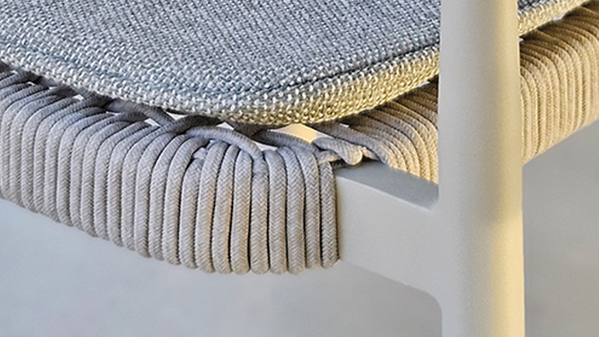 This beautiful material is perfect for outdoor use, because Taste Rope isn't just any shoelace. Taste uses very high-quality rope made from 100% SDP (Solution Dyed Polypropylene). This material is extremely strong and has very little stretch. Polypropylene is oil-based, making it virtually impermeable to dirt and contaminants, just like our cushions. Taste offers exclusive designs using hand-woven rope patterns and techniques.