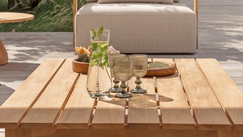 Teak is a natural product and particularly suitable for outdoor use. It is resistant to pests and mold and can withstand sun, rain, and snow. Over time, teak develops a silver-gray patina. Teak is a robust material and requires little maintenance. If you prefer the original color of your teak, you can easily prevent it from turning gray by regularly using our care product. You can also clean teak with green soap. We offer a warranty on all manufacturing and construction defects. This does not cover the working of teak. If you choose teak, we expect you to appreciate these qualities. Hairline cracks that may develop, knots in the teak, and rough surfaces or irregular discoloration over time are not covered by our warranty. These characteristics give teak its unique character and appearance; they are part of its natural properties. Be careful with a flowerpot or vase on your teak garden table, as this can cause stubborn rings or color variations. Imperfections are common; these imperfections are characteristic of this product. These irregularities can never give rise to a claim, warranty, or complaint. This is a sign of originality!