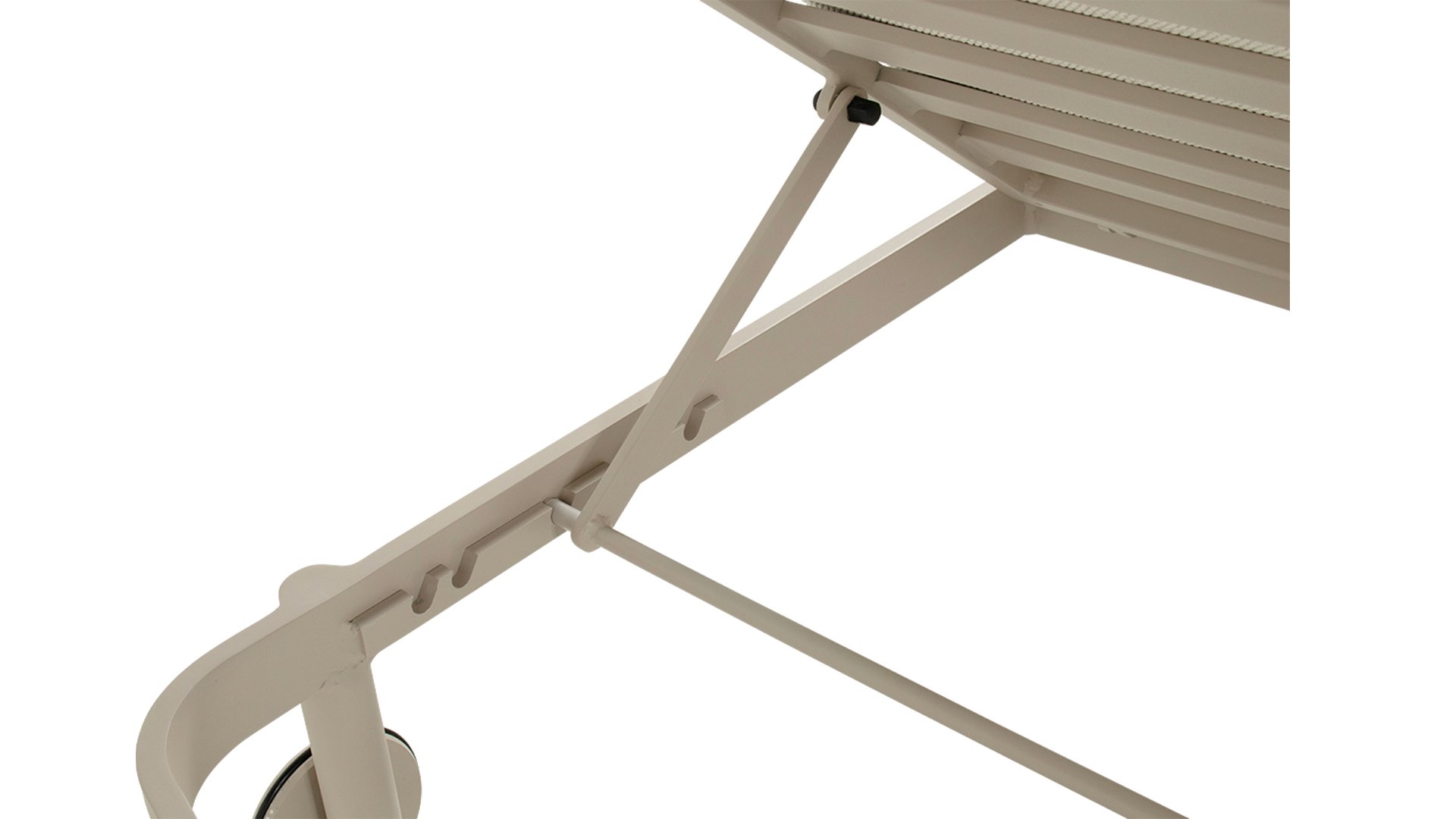 The Palma sunbed combines style with ease of use. Thanks to the adjustable backrest and wheels, the bed is easy to move and adjust. The beige Weather Ready cushion provides comfort even in unpredictable weather.