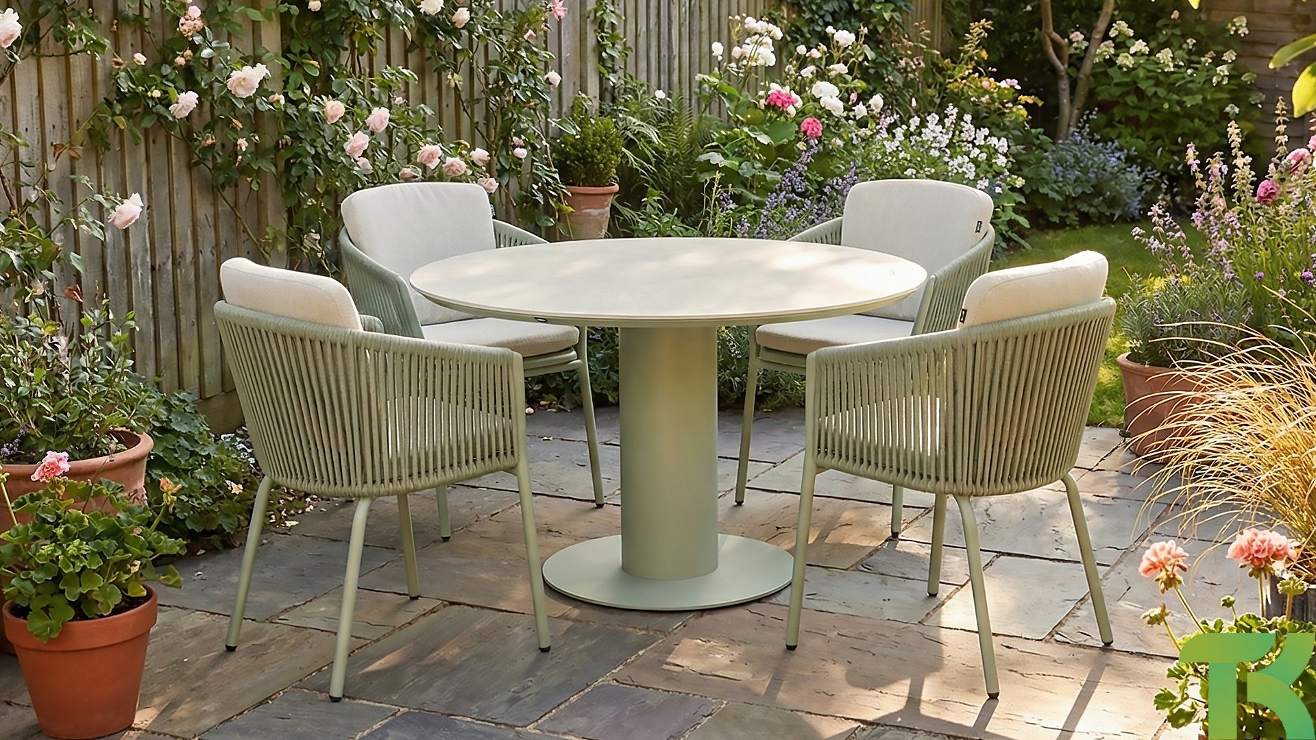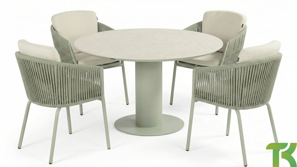 1 x Hartman Girona Table Alu-Soft-Green - Ceramic Beige Ø120cm
