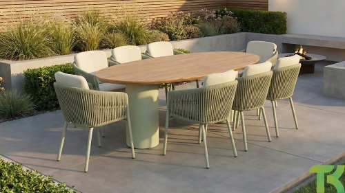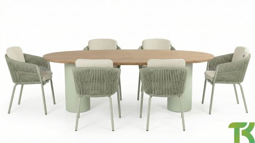 1 x Hartman Malaga Table Alu Soft Green - Teak 220x120cm