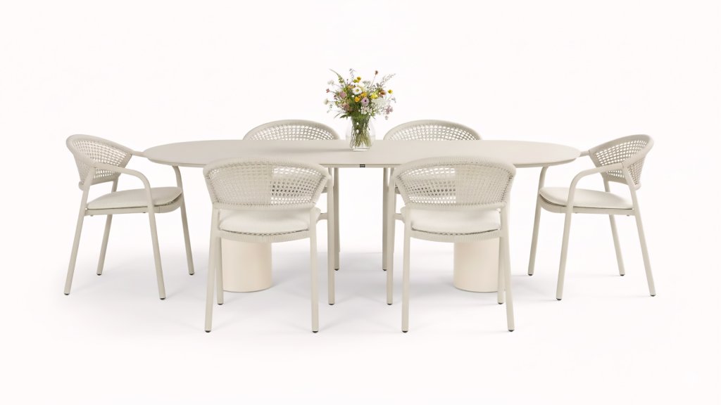 Aluminum is very easy to maintain and lightweight, just like our wickerwork. This practical furniture is easy to clean. Our aluminum, with a durable powder coating, is weatherproof and UV-resistant. Aluminum is rust-resistant, timeless, and stylish.