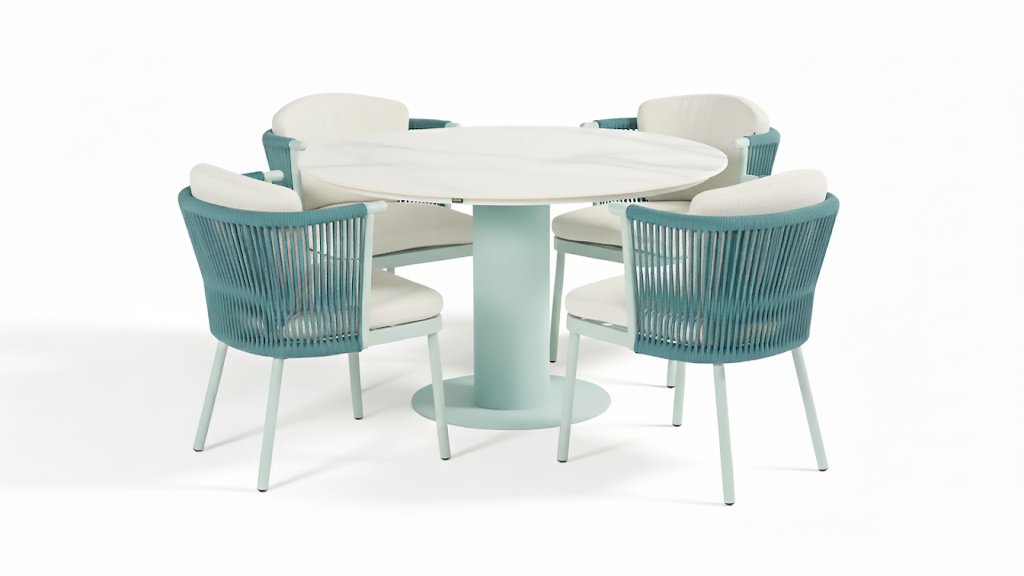 1 x Hartman Girona table Alu Lulu Blue - Ceramic White Marble Ø120cm