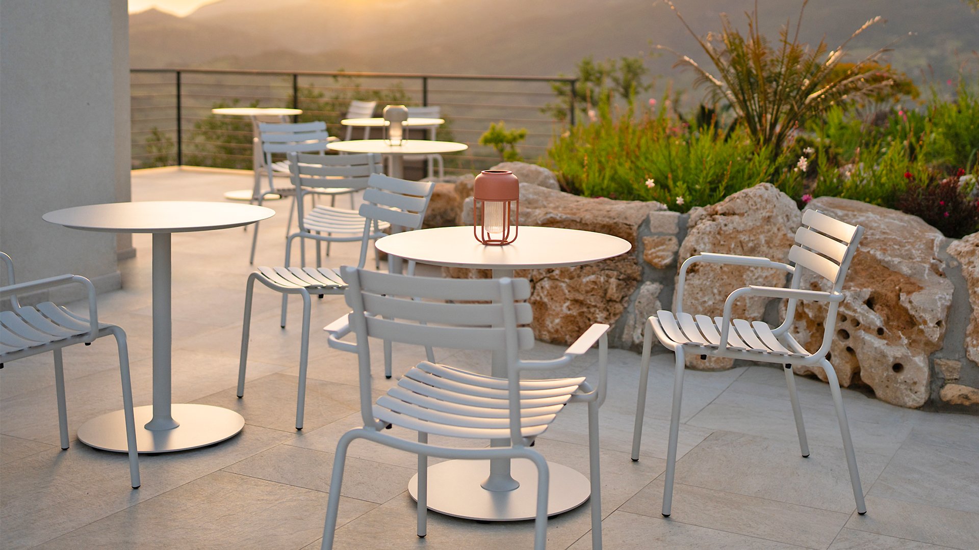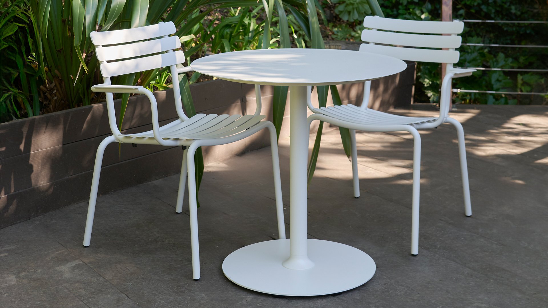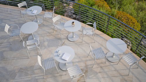 ALUA is a versatile aluminum dining chair, designed for a variety of different environments, whether it is a private balcony, a public park, or a restaurant. The chair is built according to the design concept of the HOUE ReCLIPS Dining Chair and requires minimal maintenance.