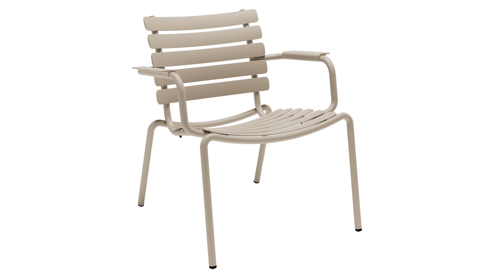 ALUA is a versatile aluminum lounge chair designed for a wide range of environments – whether it is a private balcony, a public park, or a restaurant. The chair is built on the design concept of the HOUE ReCLIPS dining chair and requires minimal maintenance.