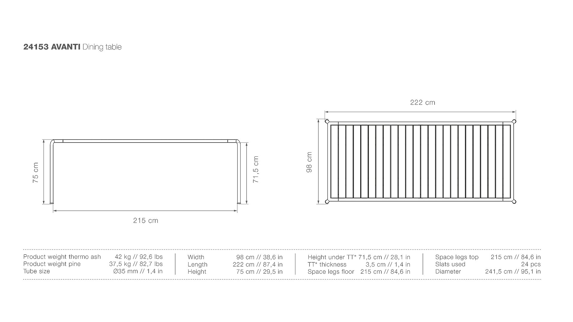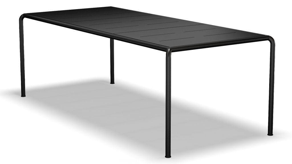 The AVANTI... Unlike the FOUR series from HOUE, the AVANTI features more rounded shapes instead of cubic forms. The AVANTI bases are powder-coated steel, which is very low-maintenance and extremely durable. There is also a choice of different sizes and another type of tabletop. The sizes include: 83cm / 153cm / 222cm. The frames are available in the colors: Black / Olive Green / Muted White. The tabletop is available in thermo ash wood and aluminum. You can remove the tabletop for storage in the shed, regardless of the material. Additionally, you can extend the table with various components.