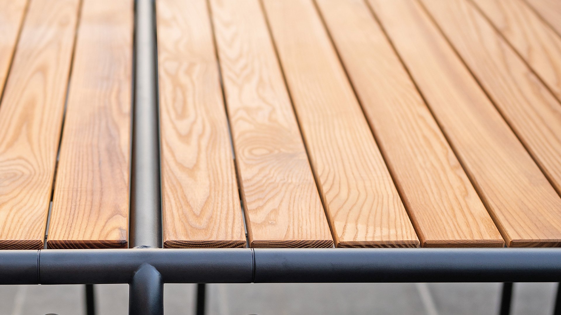 The tabletop of the HOUE AVANTI is made from European thermo ash wood. Our thermo-ash comes from sustainably managed European forests (FSC ® - FSC C153404) and is thermally treated at a temperature of at least 215°C without the addition of chemical substances, using steam to prevent splitting and cracking. This treatment gives the ash wood its impressive durability and prevents the establishment of mold.
