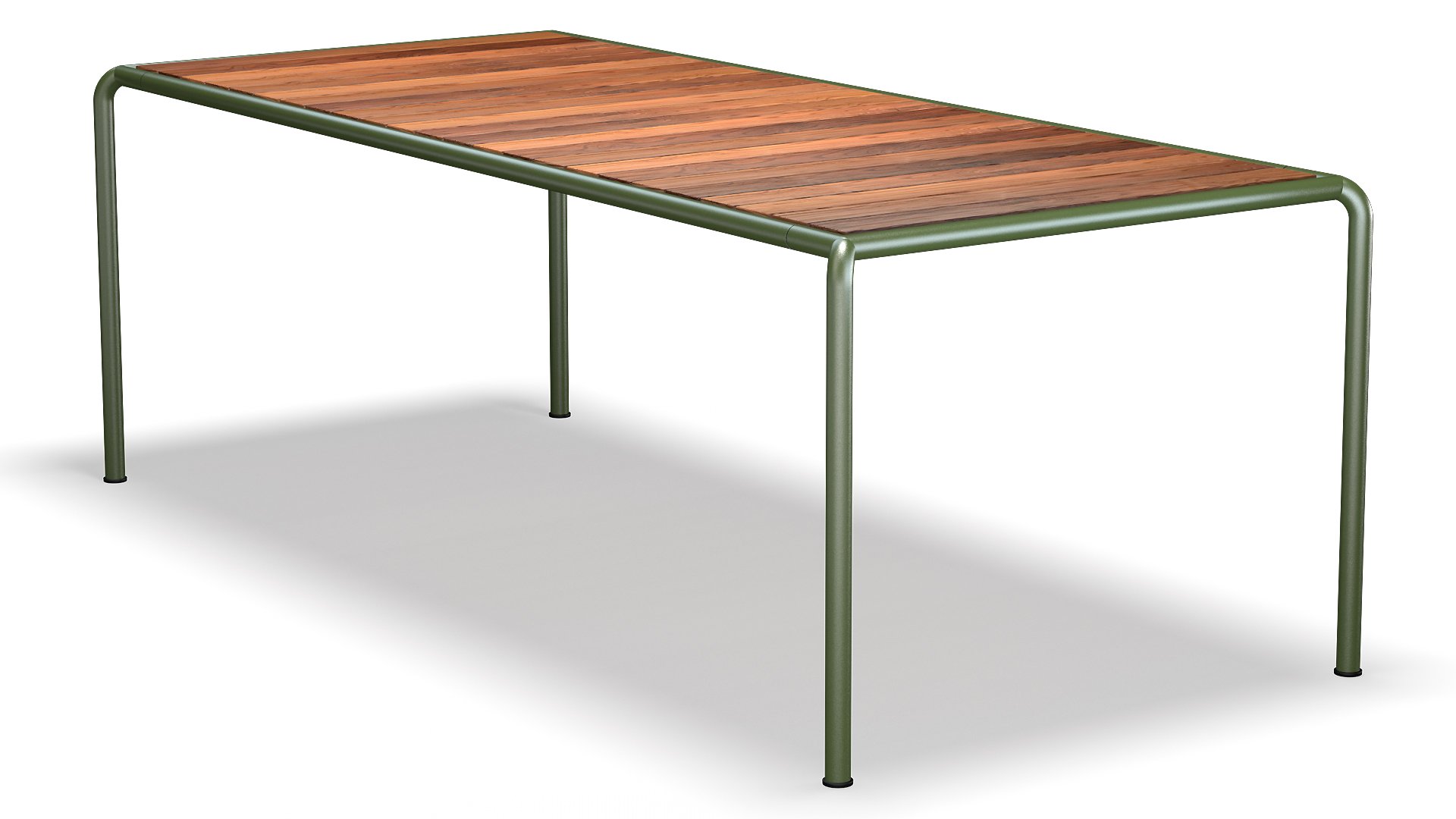 The AVANTI... Unlike the FOUR series from HOUE, the AVANTI has more rounded shapes instead of cubic forms. The AVANTI bases are powder-coated steel, which is very low maintenance and extremely sturdy. There is also a choice of different sizes and another type of tabletop. The sizes include: 83cm / 153cm / 222cm. The frames are available in the colors: Black / Olive Green / Muted White. The tabletop is available in thermo ash wood and aluminum. You can remove the tabletop to store it in the shed, regardless of the material. Additionally, you can also extend the table with different parts.
