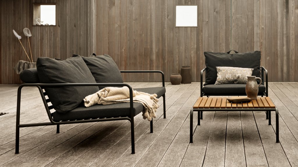 The HOUE AVON collection is designed with the desire to create something with a very light appearance and a low sleek profile, while maintaining a high level of comfort. The maintenance-free frame and the construction of the large soft back cushions are precisely that: the simplicity of the structure, where low lines ensure that the design always looks proud, with or without cushions - summer or winter. The handles of the cushions are a statement to the function of the product, making them easy to grab and store if necessary.
