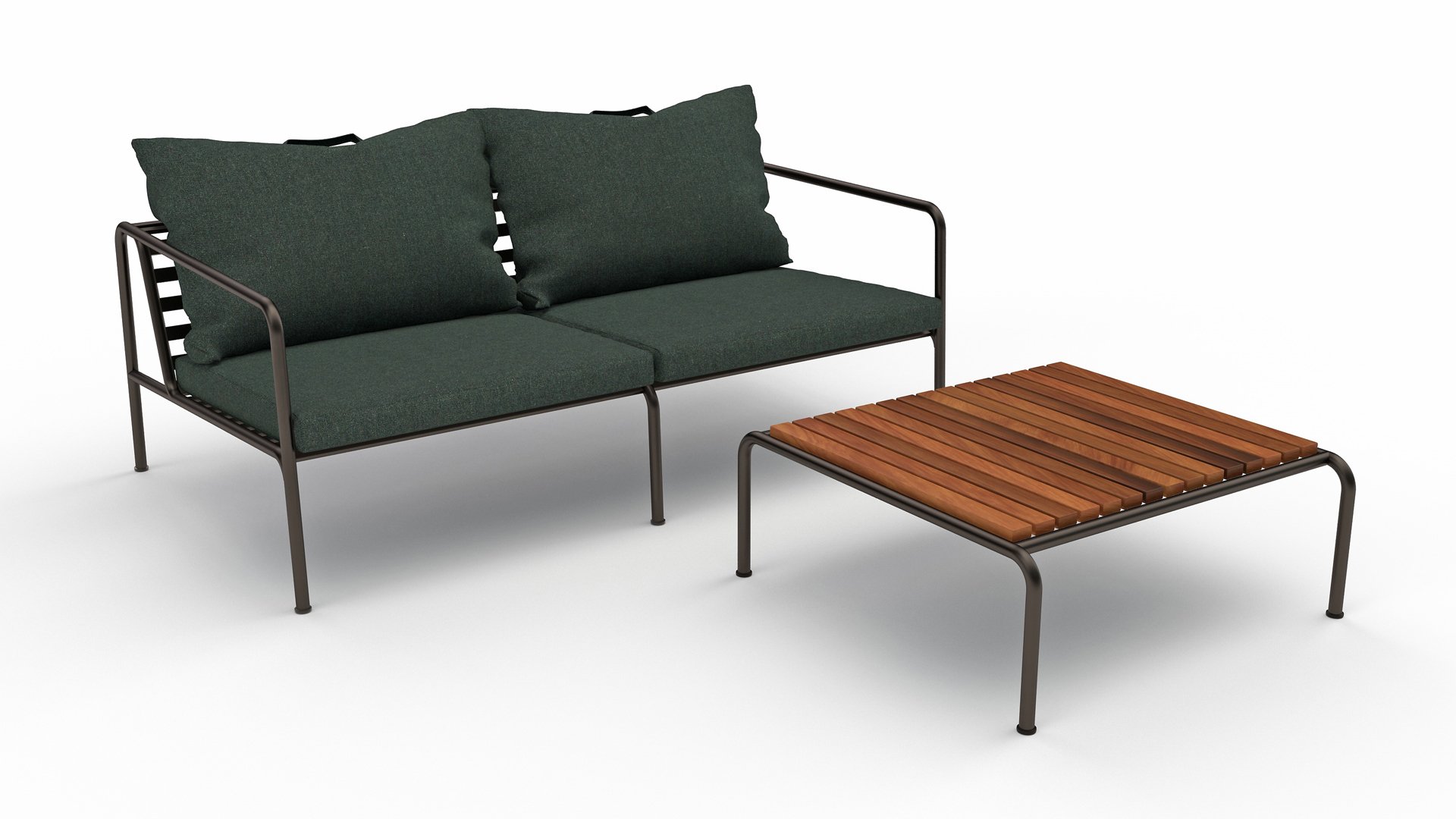 The HOUE AVON collection is designed with the desire to create something with a very light appearance and a low-profile structure, while maintaining a high level of comfort. The maintenance-free frame and the construction of the large soft back cushions are just that: the simplicity of the structure, where low lines ensure that the design always looks proud, with or without cushions - summer or winter. The handles of the cushions are a statement to the function of the product, making them easy to grab and store if necessary.