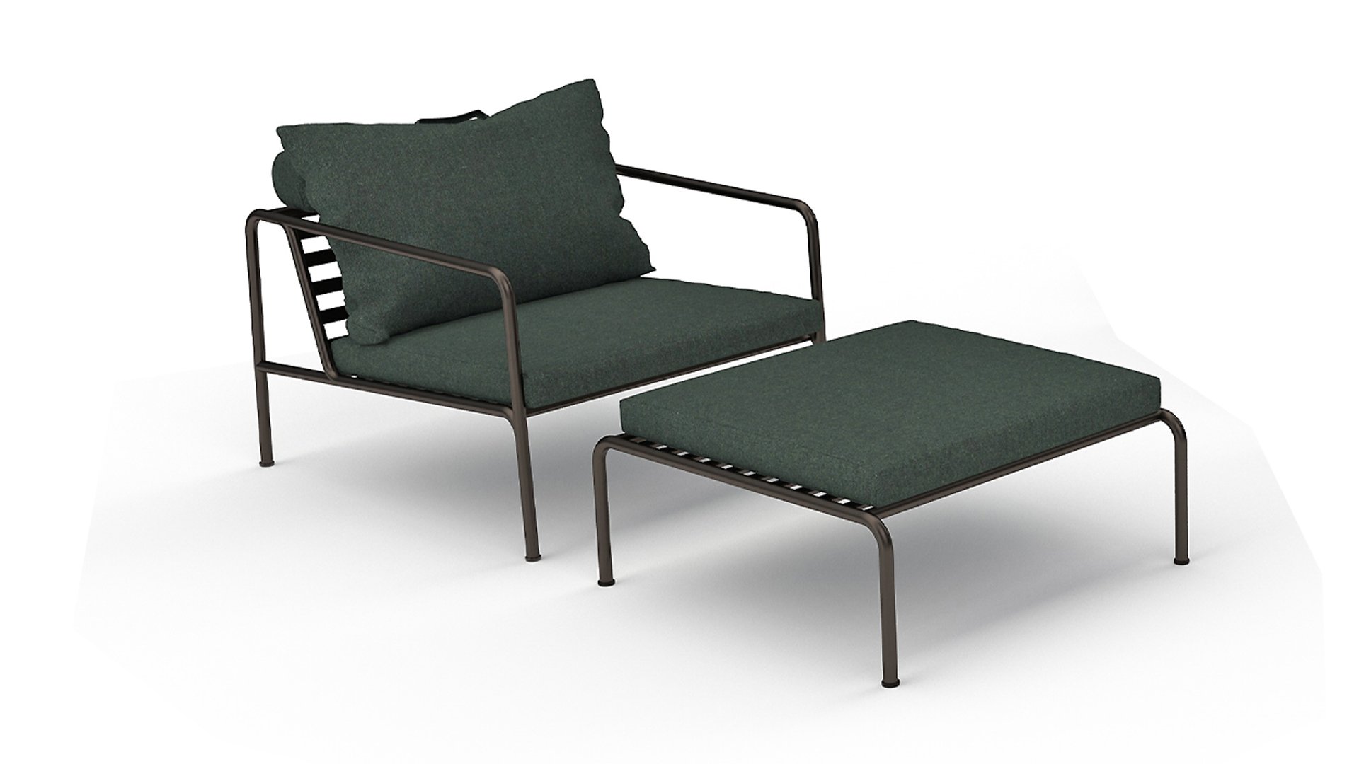 The HOUE AVON collection is designed with a very light appearance and a low sleek profile, while maintaining a high level of comfort. The maintenance-free frame and the construction of the large soft back cushions are exactly that: the simplicity of the structure, where low lines ensure that the design always looks proud, with or without cushions - summer or winter. The handles of the cushions make a statement to the function of the product, making them easy to grab and store if necessary.