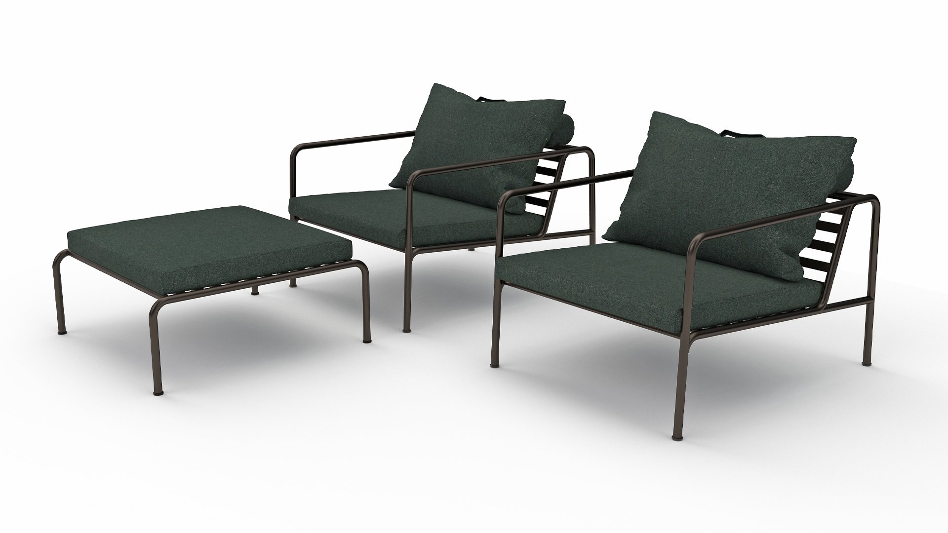 The HOUE AVON collection is designed with the desire to create something with a very light appearance and a low sleek profile, while maintaining a high level of comfort. The maintenance-free frame and the construction of the large soft back cushions are exactly that: the simplicity of the structure, where low lines ensure that the design always looks proud, with or without cushions - summer or winter. The handles of the cushions are a statement about the function of the product, making them easy to grab and store if necessary.