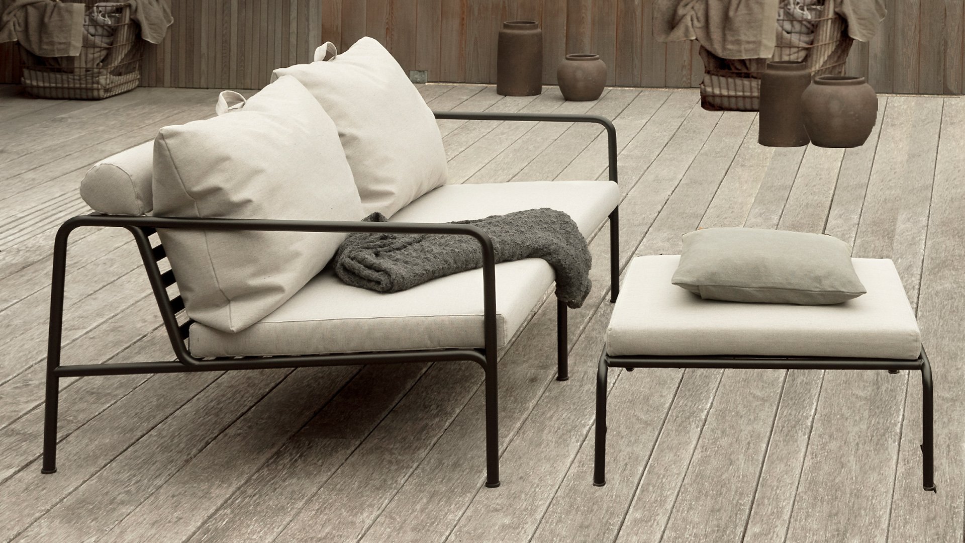The HOUE AVON collection is designed with the wish to create something with a very light appearance and low, sleek profile, while maintaining a high level of comfort. The maintenance-free frame and the construction of the large soft back cushions are exactly that: the simplicity of the structure, with low lines ensuring the design always looks proud, with or without cushions - summer or winter. The handles of the cushions are a statement to the function of the product, making them easy to grip and store when needed.