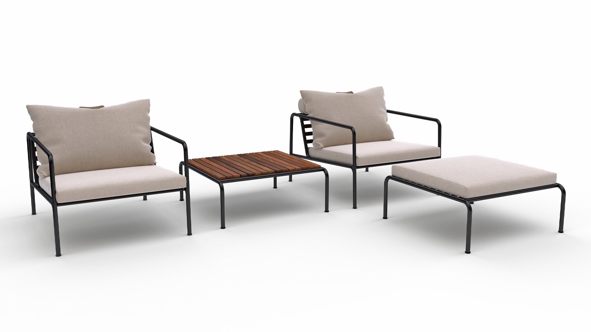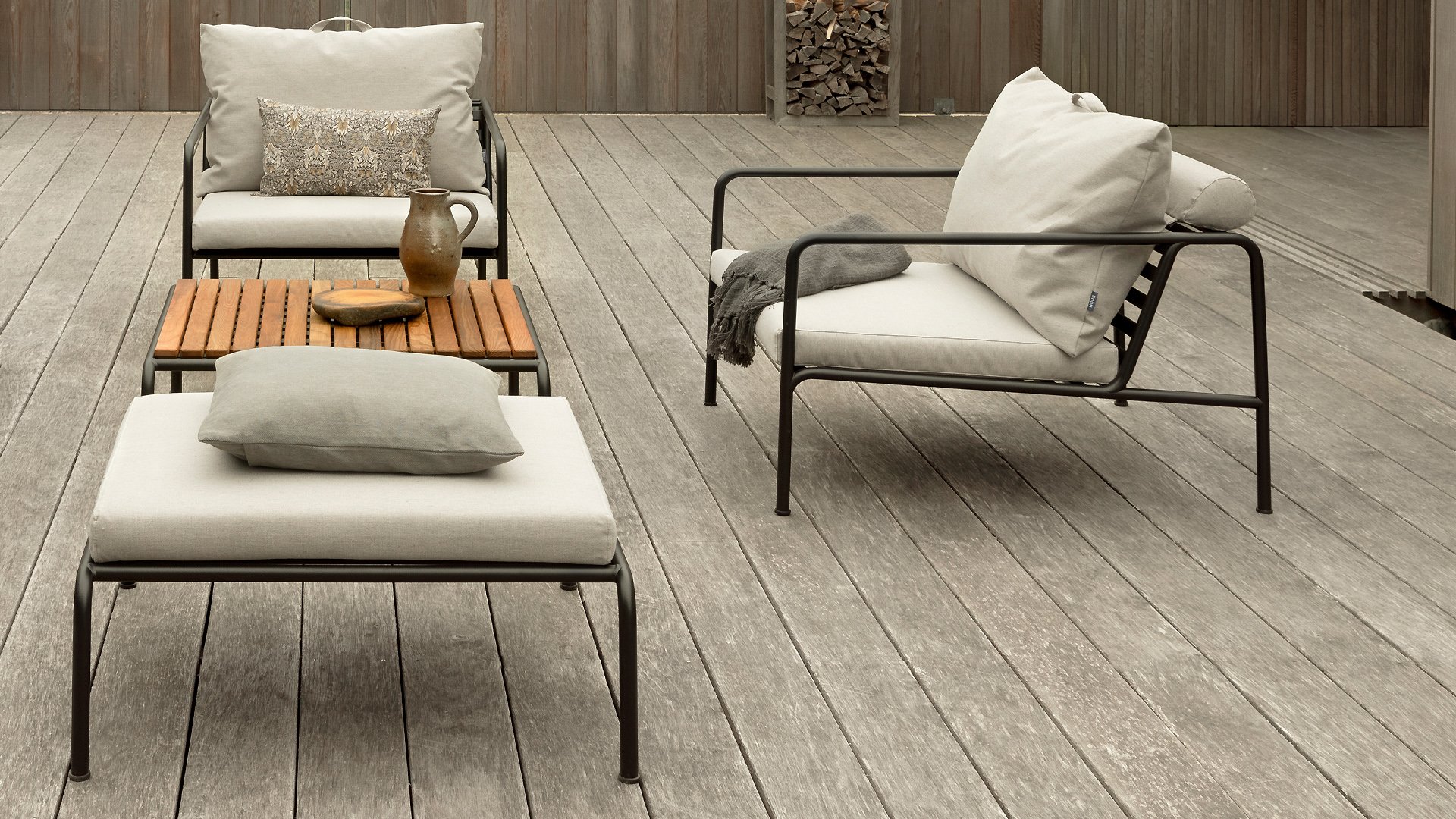 The HOUE AVON collection is designed with the desire to create something with a very light appearance and a low sleek profile, while maintaining a high level of comfort. The maintenance-free frame and construction of the large soft back cushions are precisely that: the simplicity of the structure, where low lines ensure that the design always looks proud, with or without cushions - summer or winter. The handles of the cushions are a statement to the function of the product, making them easy to grab and store if necessary.