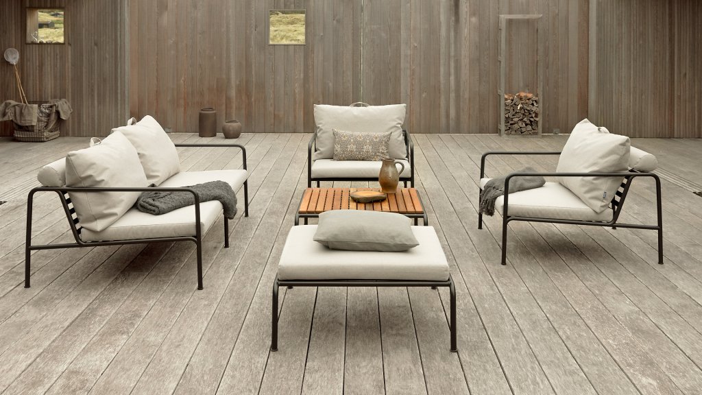 The HOUE AVON collection is designed with the desire to create something with a very light appearance and a low sleek profile, while maintaining a high comfort level. The maintenance-free frame and the construction of the large soft back cushions are exactly that: the simplicity of the structure, where low lines ensure that the design always looks proud, with or without cushions - summer or winter. The handles of the cushions are a statement to the function of the product, making them easy to grab and store when necessary.