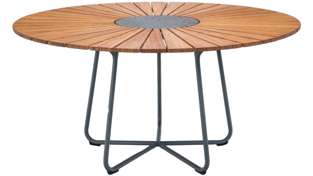 The Houe Circle is a round garden table with a beautifully flecked bamboo top. The circle comes in 2 sizes, namely 150cm and 110cm. The nice thing about this round table is that it offers plenty of space. In the center of the circle table is a composite stone. This is handy if you need a place to put your hot pots, etc. The Scandinavian design combined with the sustainable bamboo ensures that this table looks great in any garden. Bamboo is a fast-growing plant and therefore much more sustainable than teak. We recommend oiling the table 2-3 times a year. When the table is well maintained, it will last a very long time and retain its beautiful colors.