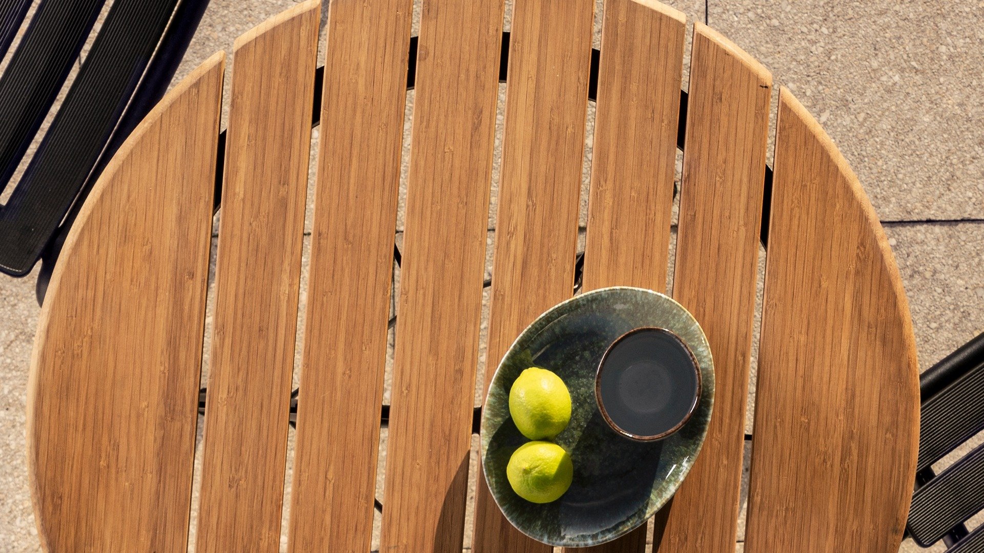 What a stylish bistro table this HOUE Circum table is. The warm Bamboo top combined with the stylish leg set makes this table a beautiful addition to any garden or balcony. Can be combined with the entire dining collection from HOUE. Can you picture yourself drinking coffee at this table? Bamboo, being a fast-growing plant species, is a sustainable alternative to teak wood. We recommend oiling the table 2-3 times a year to maintain its warm color. Also available with an aluminum top.
