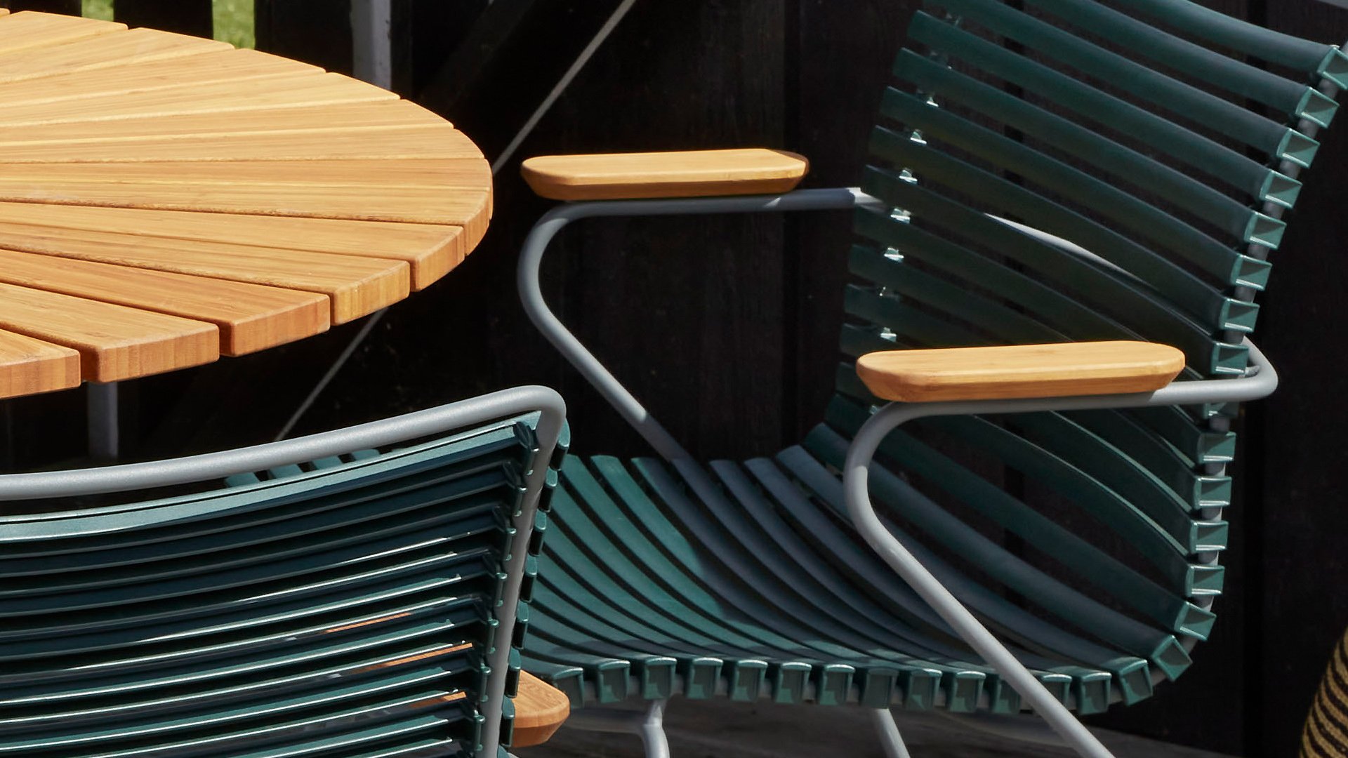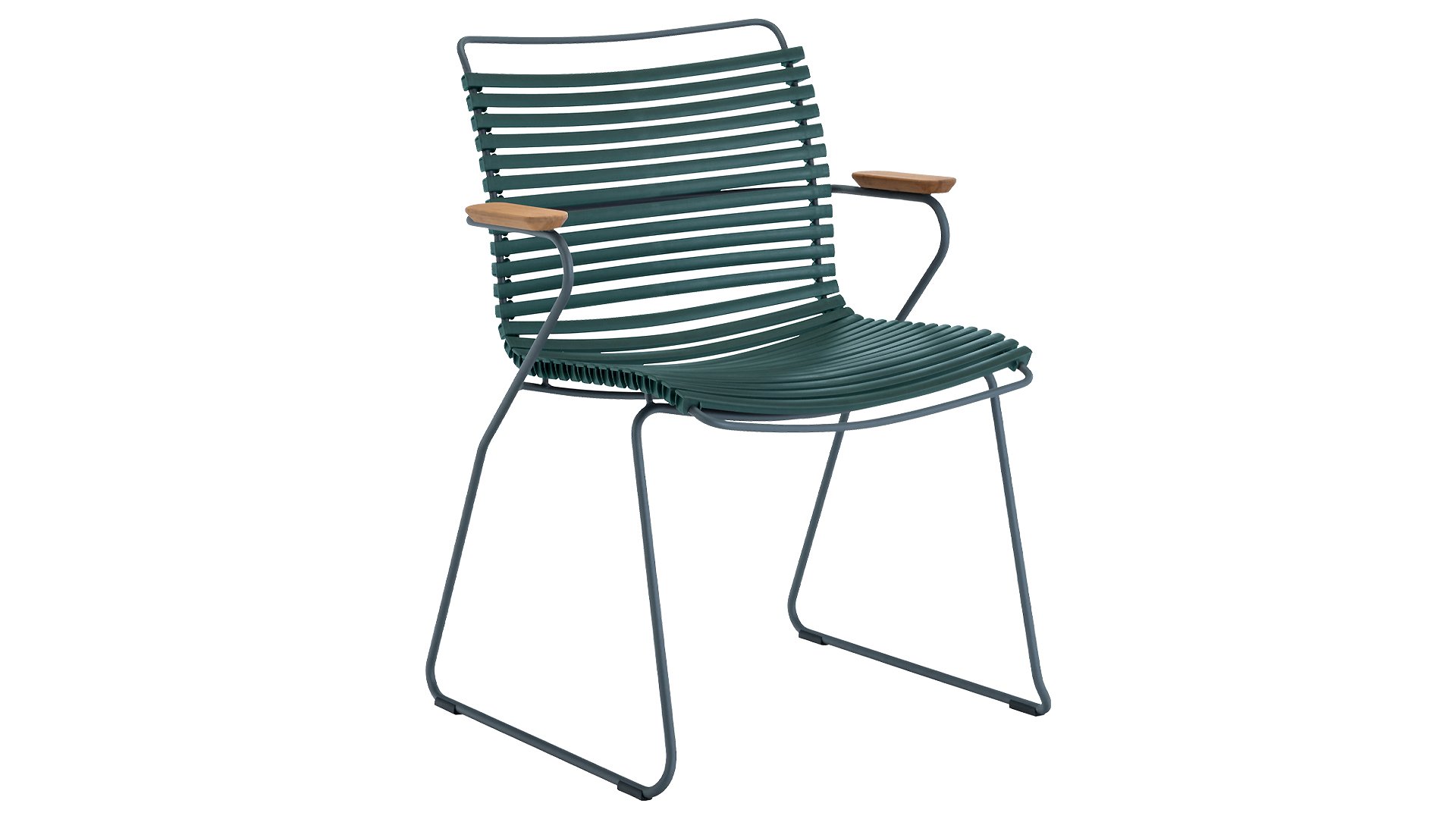 This garden chair is available with or without armrests, and is fully stackable! HOUE CLICK Armchair  is simple, honest, and ergonomically designed. This garden chair features a backrest that perfectly adapts to any body, the ergonomically shaped back makes the chair very comfortable to use without a cushion. Also available with a high backrest or as an adjustable chair.