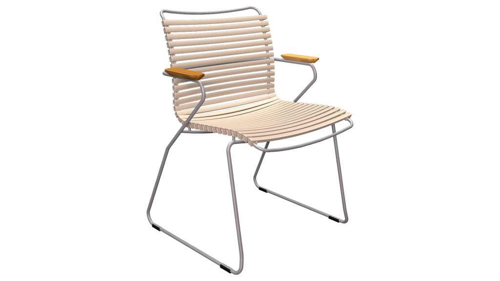 This garden chair is available with or without armrests, and is fully stackable! HOUE CLICK Armchair  is simple, honest, and ergonomically designed. This garden chair features a backrest that perfectly adapts to any body, the ergonomically shaped back makes the chair very comfortable to use without a cushion. Also available with a high backrest or as an adjustable chair.