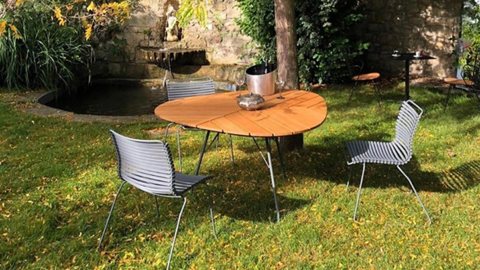 This unique table from Houe lives up to its name, the resemblance to a leaf is striking... The triangular shape and the placement of the base allow up to 9 people to dine at the Leaf. The Leaf table, designed by Henrik Pedersen, is made of gray powder-coated metal with a table top made of bamboo slats. Bamboo is a fast-growing plant. If properly maintained, this makes it a more sustainable material than teak. We recommend oiling bamboo 2-3 times a year, then the table will last for a long time and keep its warm colors.