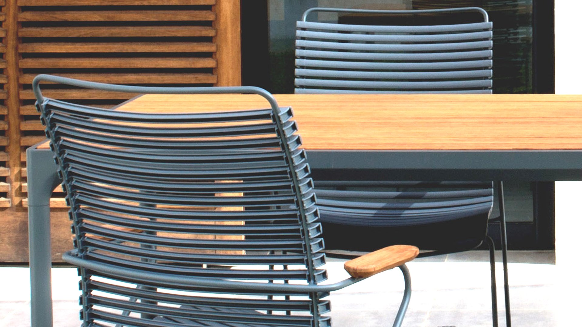 This garden chair is available with or without armrests, and fully stackable! HOUE CLICK Armchair is simple, honest, and ergonomically designed. This garden chair has a backrest that perfectly molds to every body, the ergonomically shaped back makes the chair very comfortable to use without a cushion. Also available with a high backrest or as an adjustable chair.