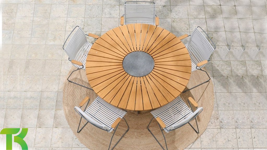 The Houe circle is a round garden table with a beautiful mottled bamboo top. The circle comes in 2 sizes, namely 150cm and 110cm. The nice thing about this round table is that it offers plenty of space. In the middle of the circle table, there is a composite stone. This is useful when you need to place your hot pans, etc. The Scandinavian design combined with the sustainable bamboo ensures that this table fits perfectly in any garden. Bamboo is a fast-growing plant and therefore much more sustainable than teak. We recommend oiling the table 2-3 times a year. When the table is well maintained, it will last a long time and retain its beautiful colors.